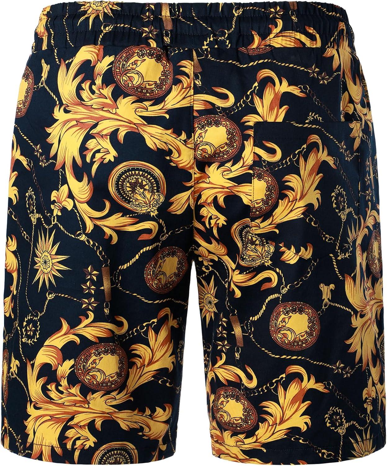 JEMITOP Men's 2 Piece Casual Cotton Stretchy Outfit Short Sleeve Button up Shirt and Shorts Set(Navy Gold)