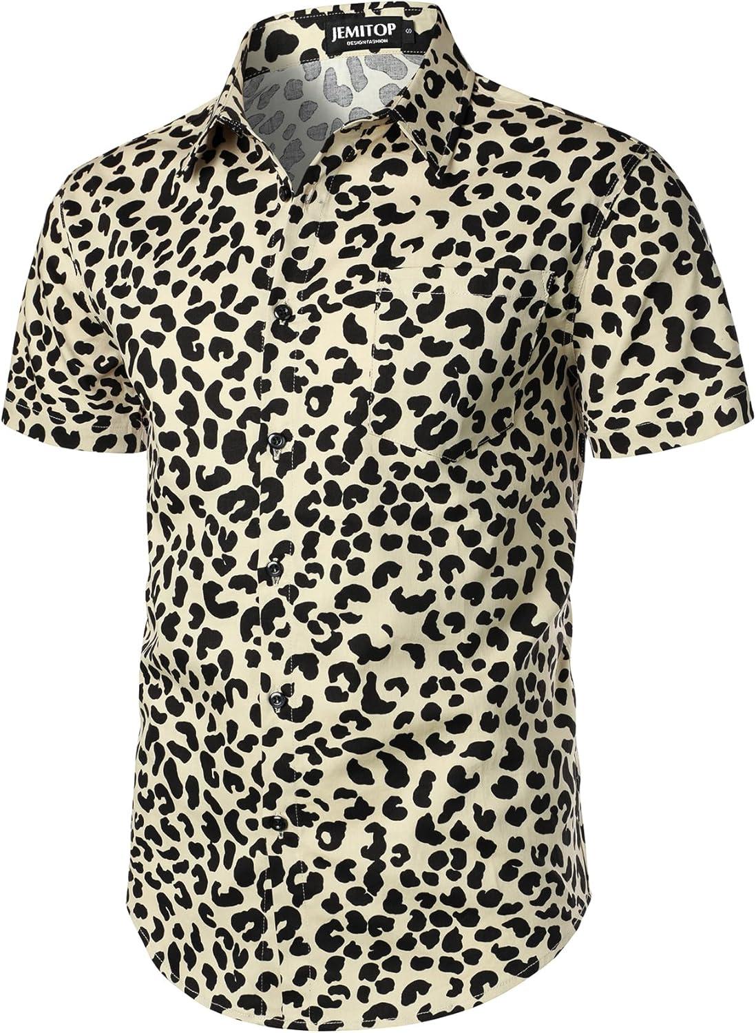 JEMITOP Men’s 2 Piece Casual Cotton Stretchy Outfit Short Sleeve Button up Shirt and Shorts Set(Gold Leopard)