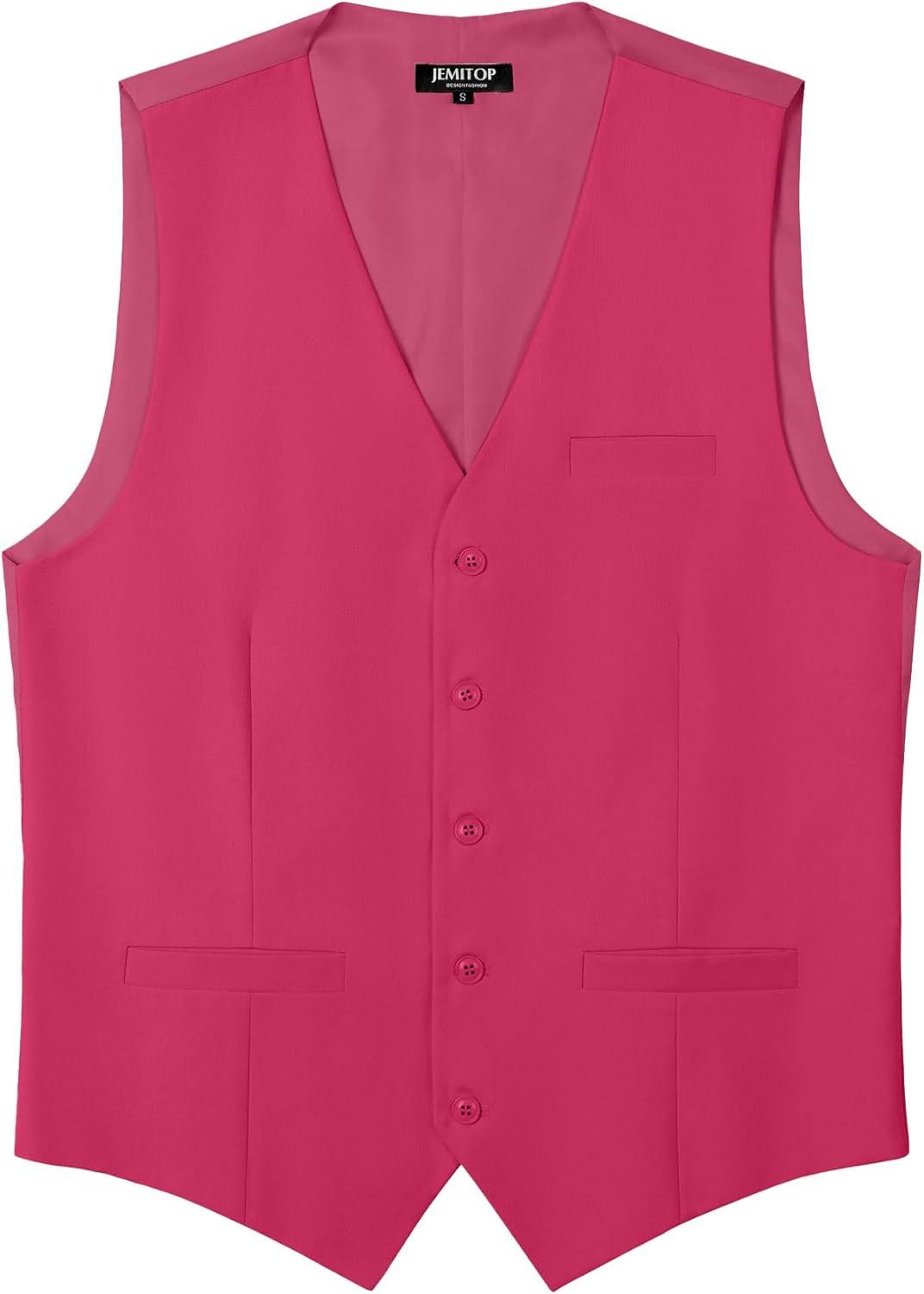 JEMITOP Men's Classic Slim Fit Dress Vest Formal Wedding Prom Tuxedo Suit Vest with Pocket(Hot Pink)