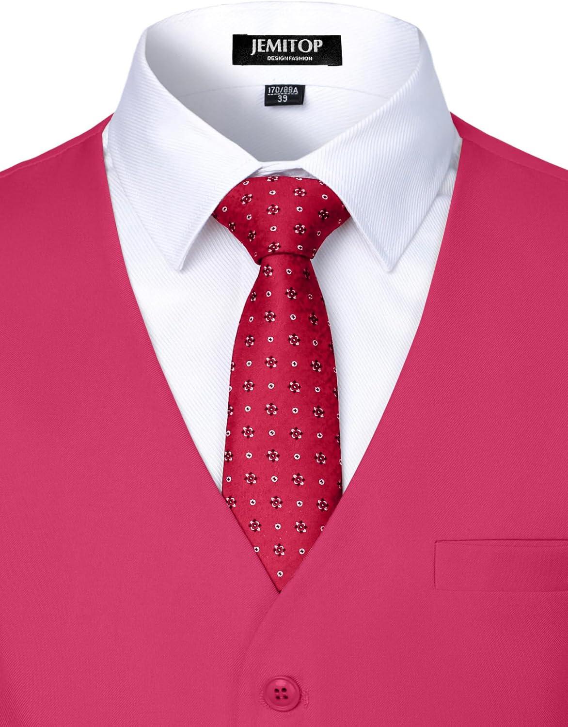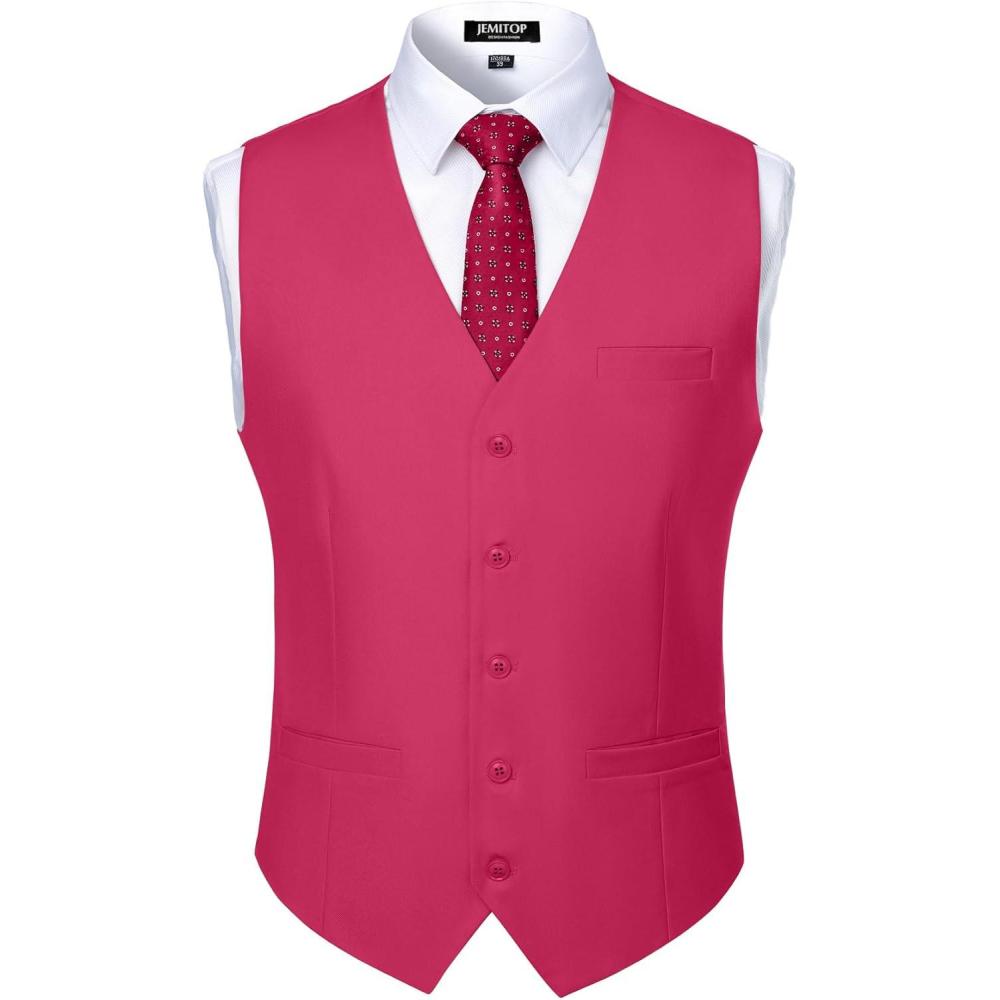 imageJEMITOP Mens Classic Slim Fit Dress Vest Formal Wedding Prom Tuxedo Suit Vest with PocketHot Pink