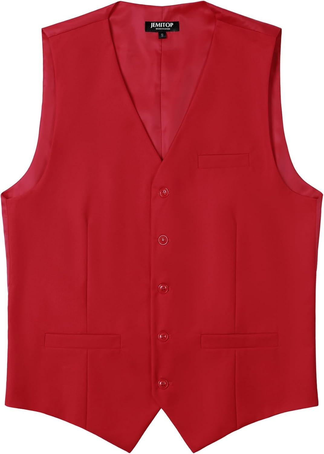 JEMITOP Men's Classic Slim Fit Dress Vest Formal Wedding Prom Tuxedo Suit Vest with Pocket(Red)