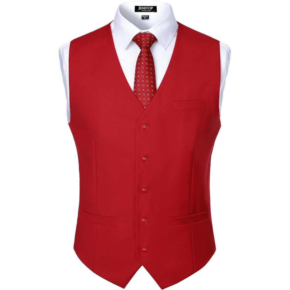 imageJEMITOP Mens Classic Slim Fit Dress Vest Formal Wedding Prom Tuxedo Suit Vest with PocketRed