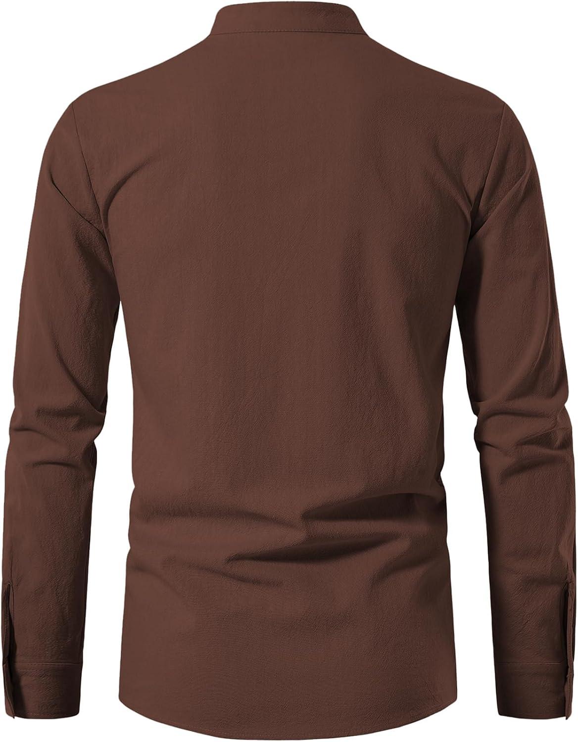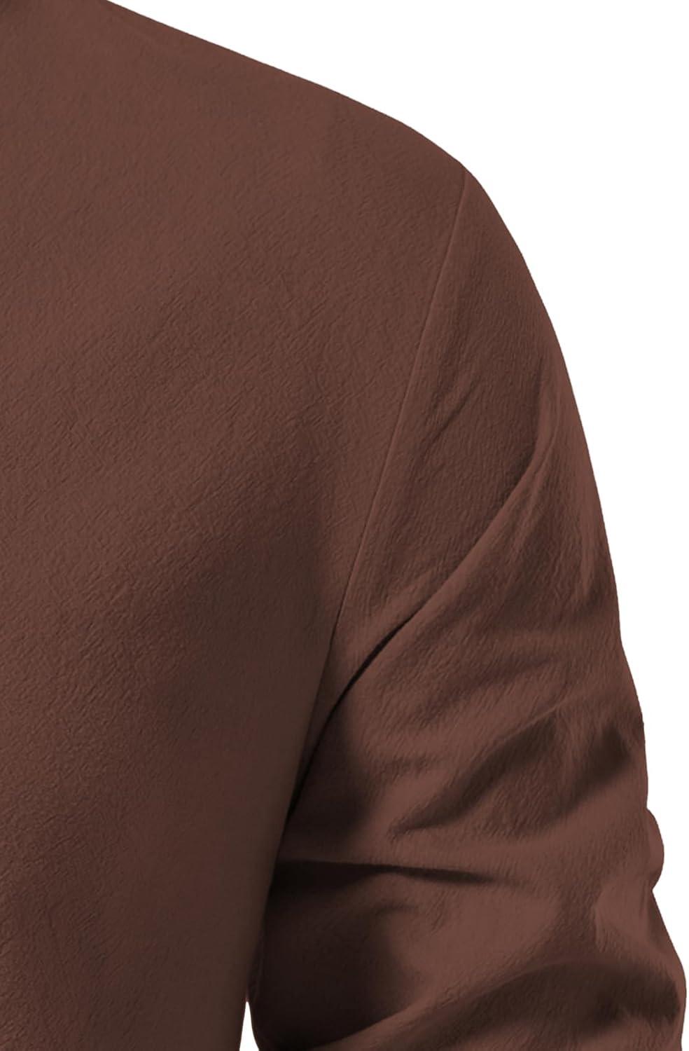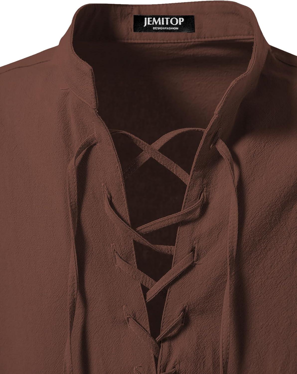 JEMITOP Men's Pure Cotton Retro Lace Up Shirts for Renaissance Pirate Medieval Viking(Brown)