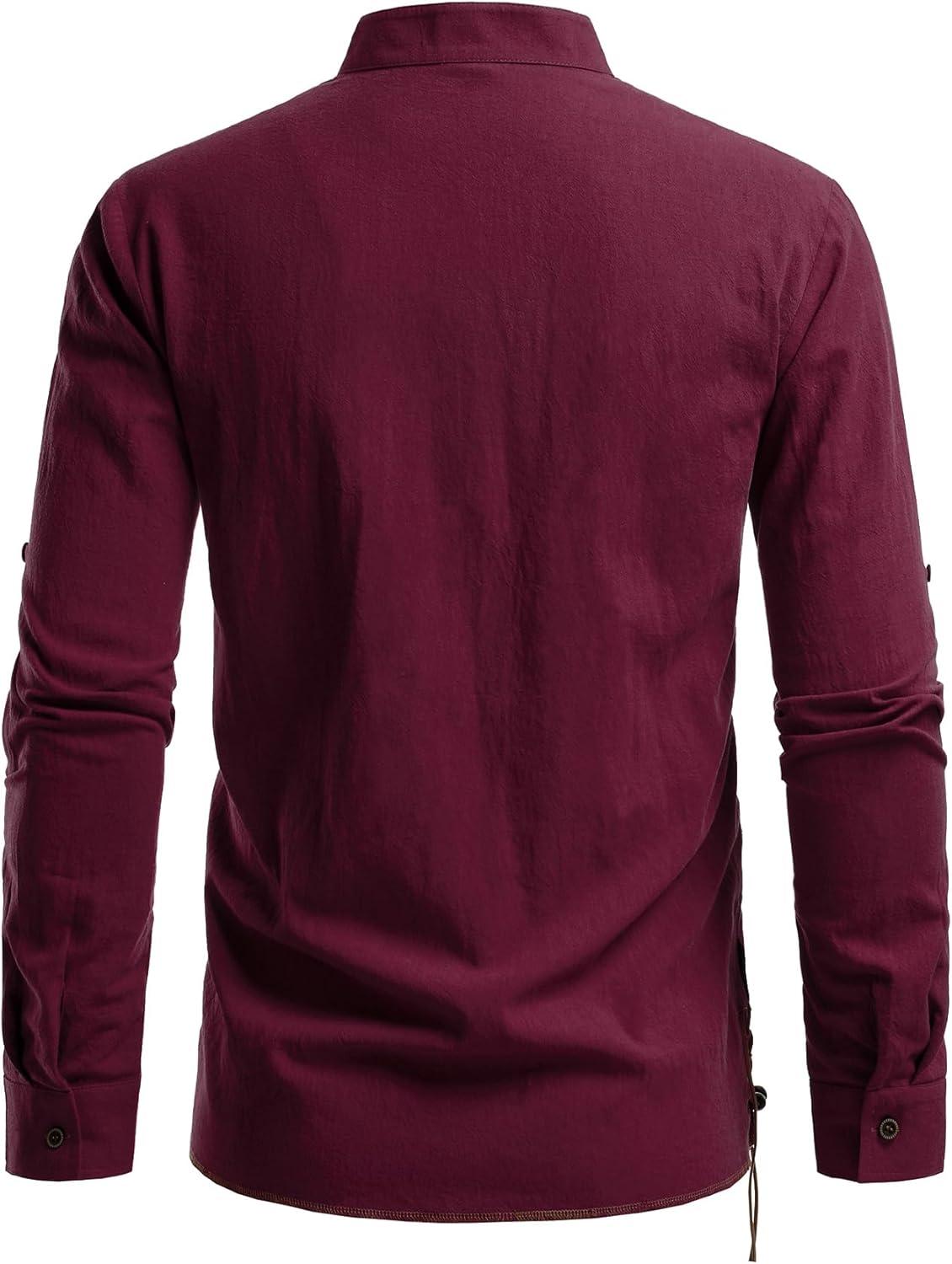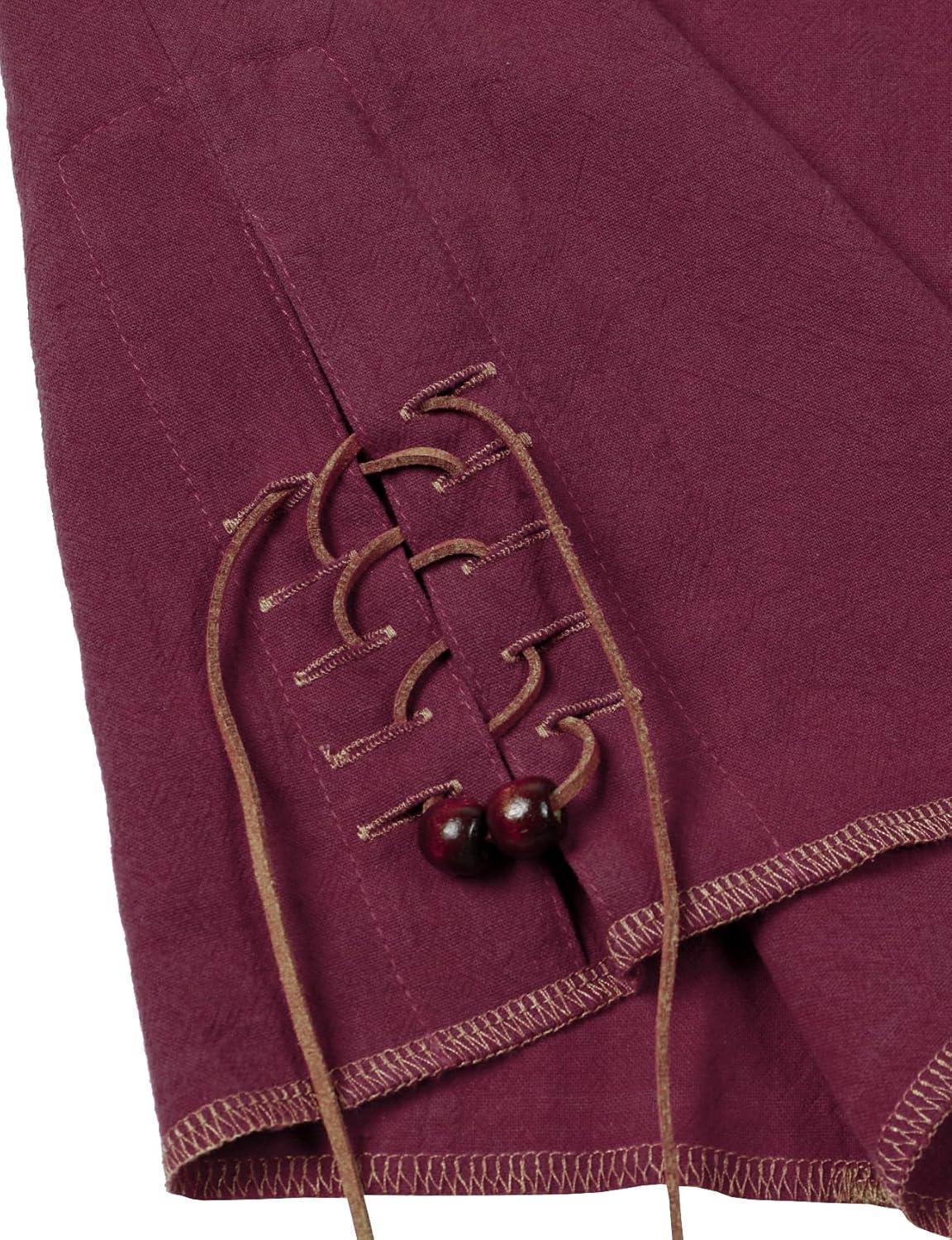 JEMITOP Men's Pure Cotton Retro Lace Up Shirts for Renaissance Pirate Medieval Viking(Burgundy Retro)
