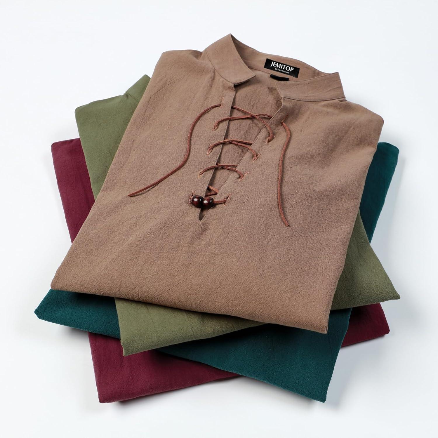 imageJEMITOP Mens Pure Cotton Retro Lace Up Shirts for Renaissance Pirate Medieval VikingDark Green Retro