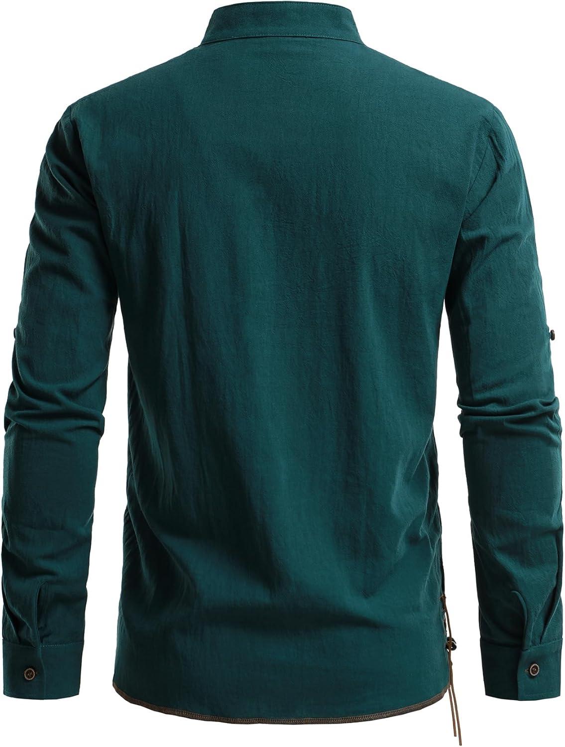 JEMITOP Men’s Pure Cotton Retro Lace Up Shirts for Renaissance Pirate Medieval Viking(Dark Green)