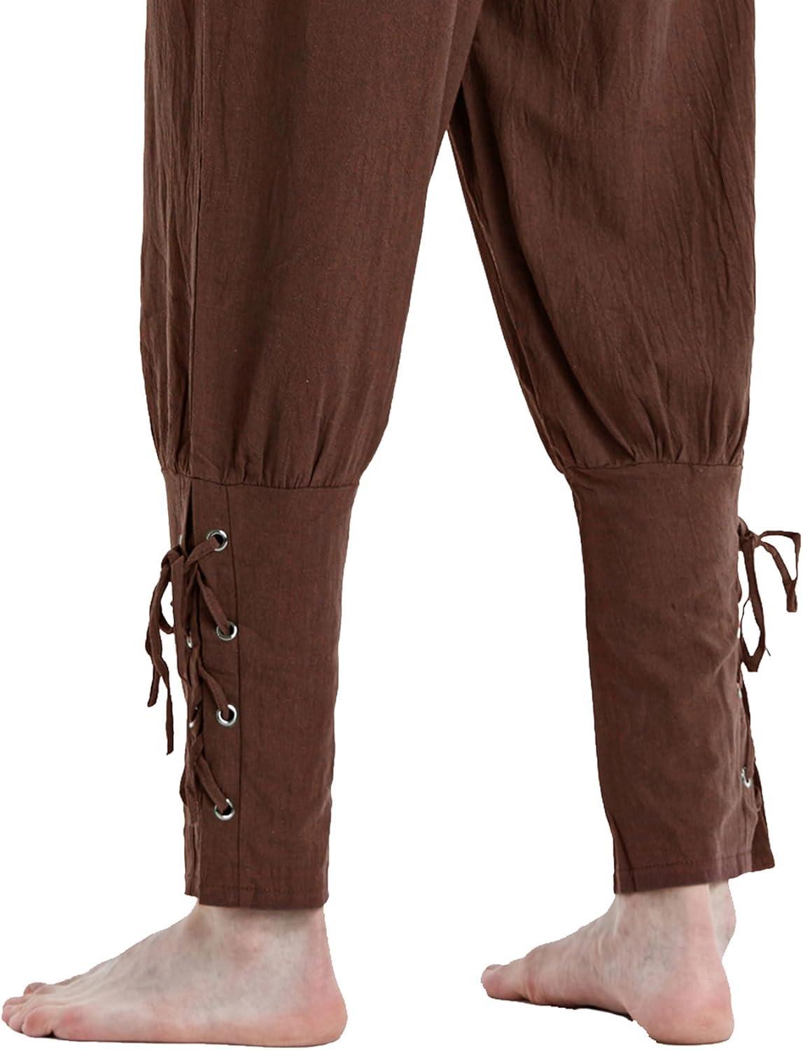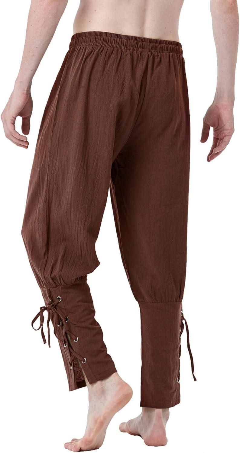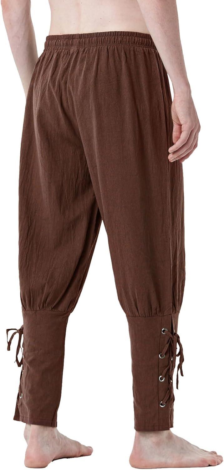 imageJEMITOP Mens Pure Cotton Vintage Ankle Banded Pants for Renaissance Pirate Viking Medieval CostumeBrown