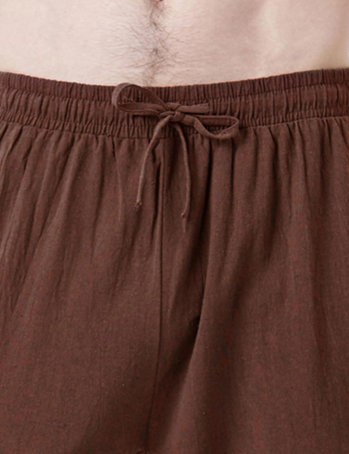 JEMITOP Men's Pure Cotton Vintage Ankle Banded Pants for Renaissance Pirate Viking Medieval Costume(Brown)