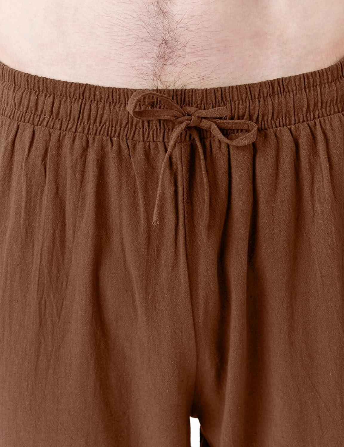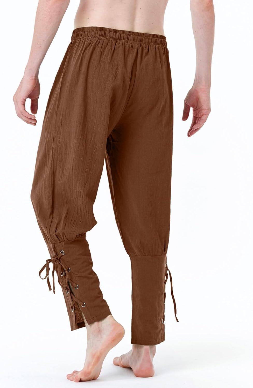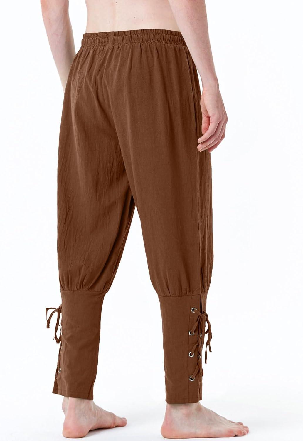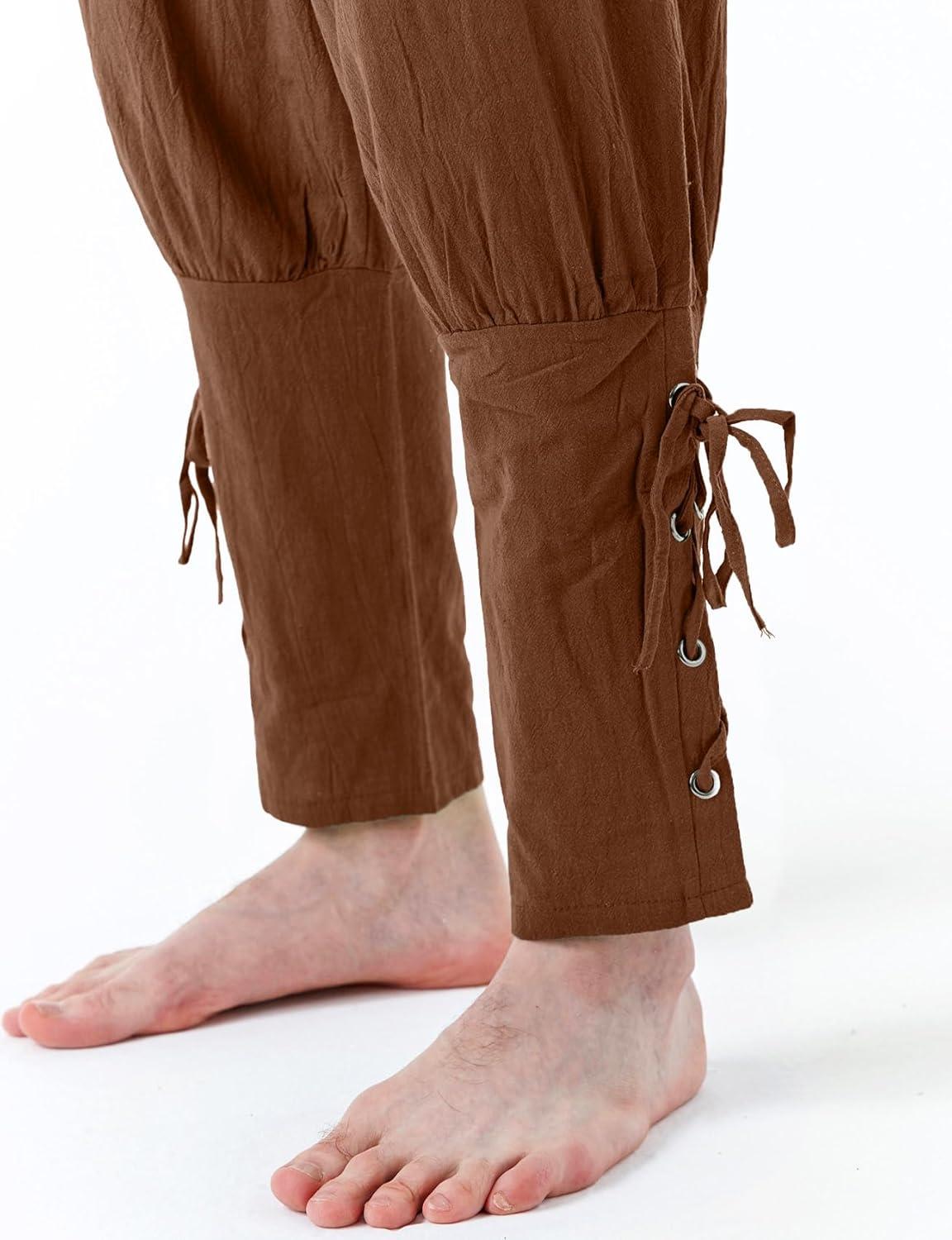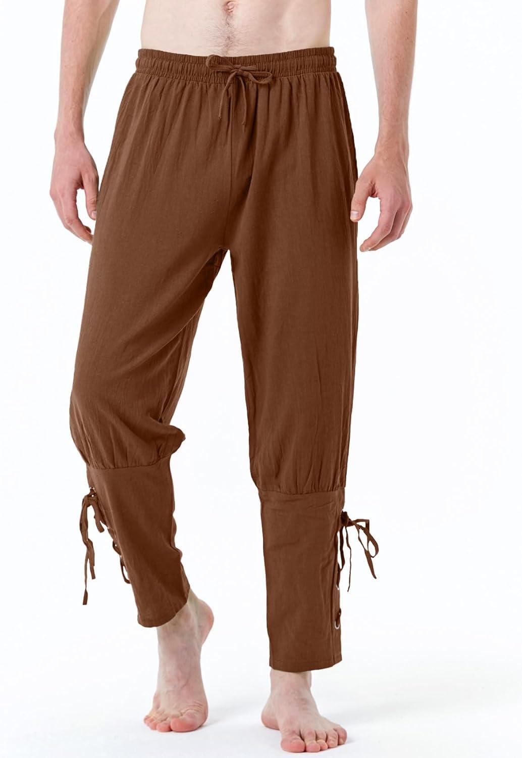 imageJEMITOP Mens Pure Cotton Vintage Ankle Banded Pants for Renaissance Pirate Viking Medieval CostumeDark Brown