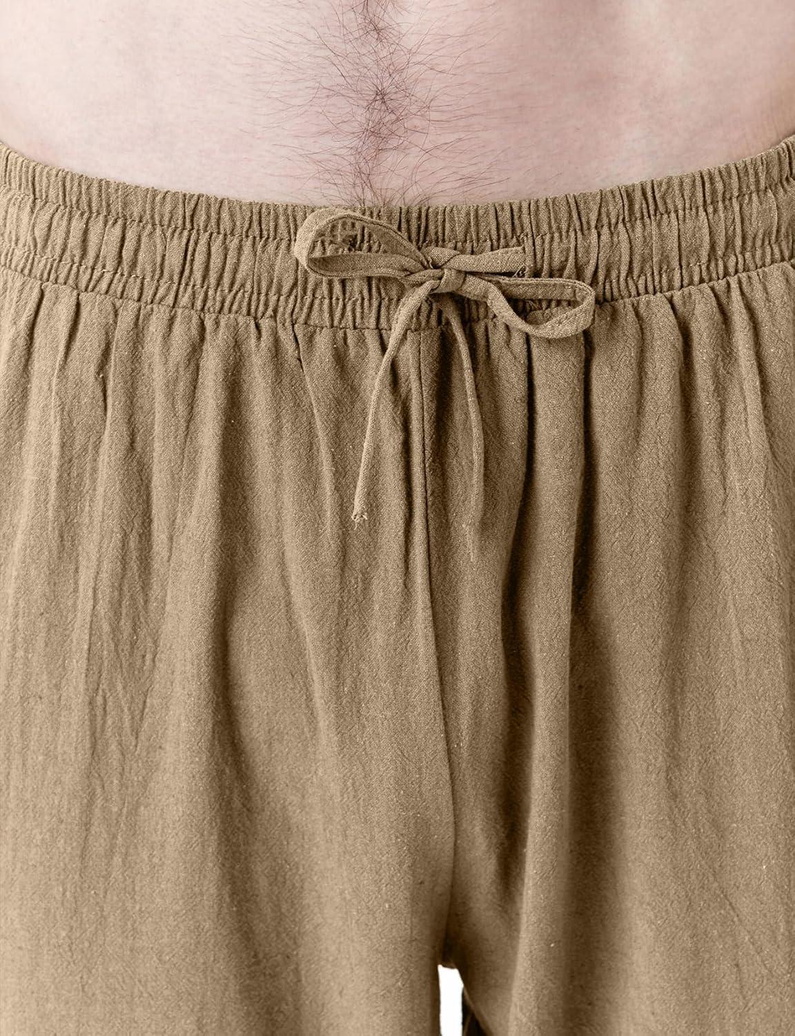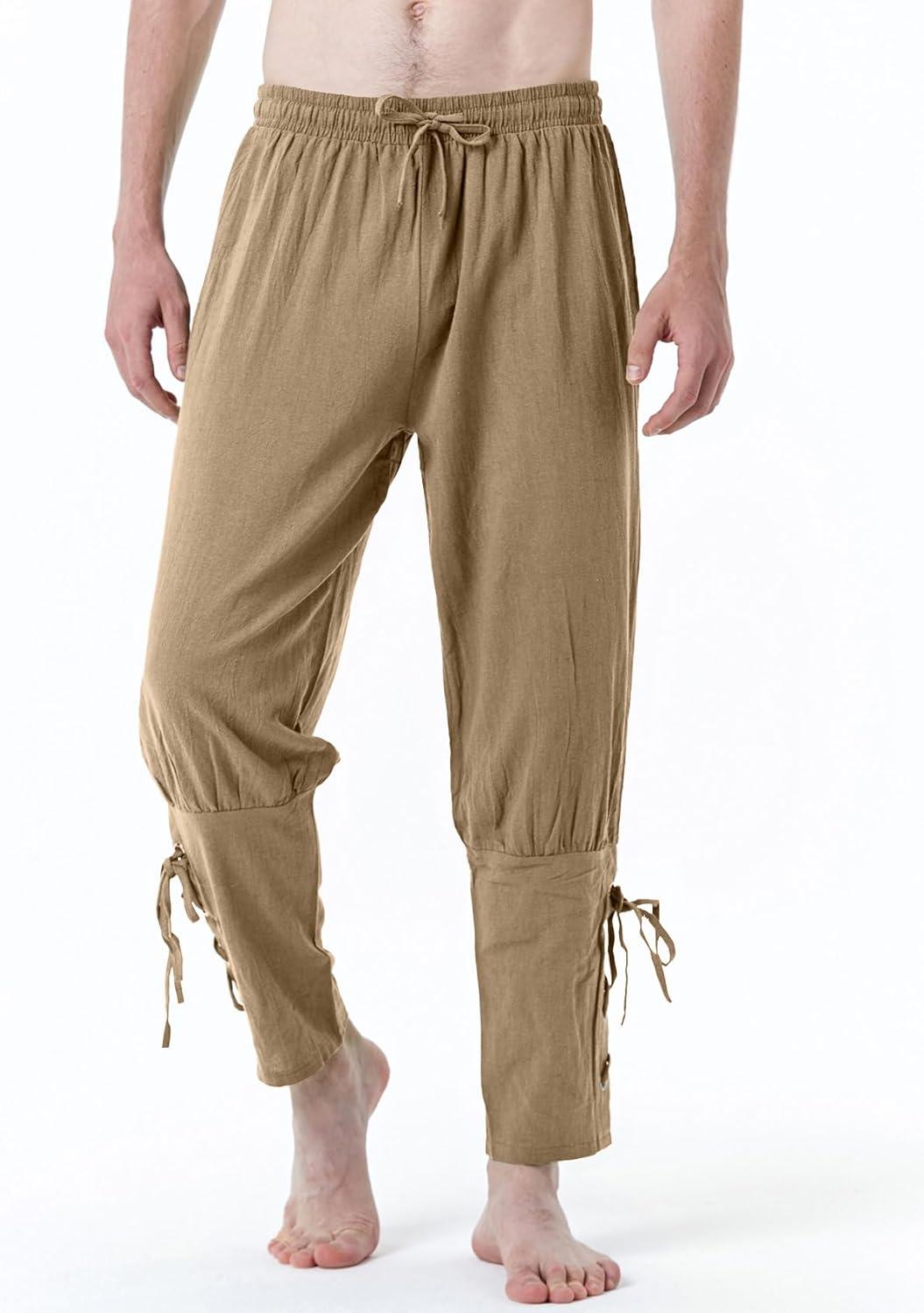 JEMITOP Men’s Pure Cotton Vintage Ankle Banded Pants for Renaissance Pirate Viking Medieval Costume(Dark Khaki)