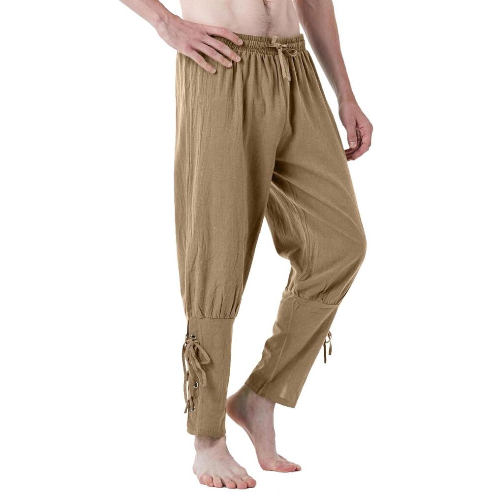 imageJEMITOP Mens Pure Cotton Vintage Ankle Banded Pants for Renaissance Pirate Viking Medieval CostumeDark Khaki