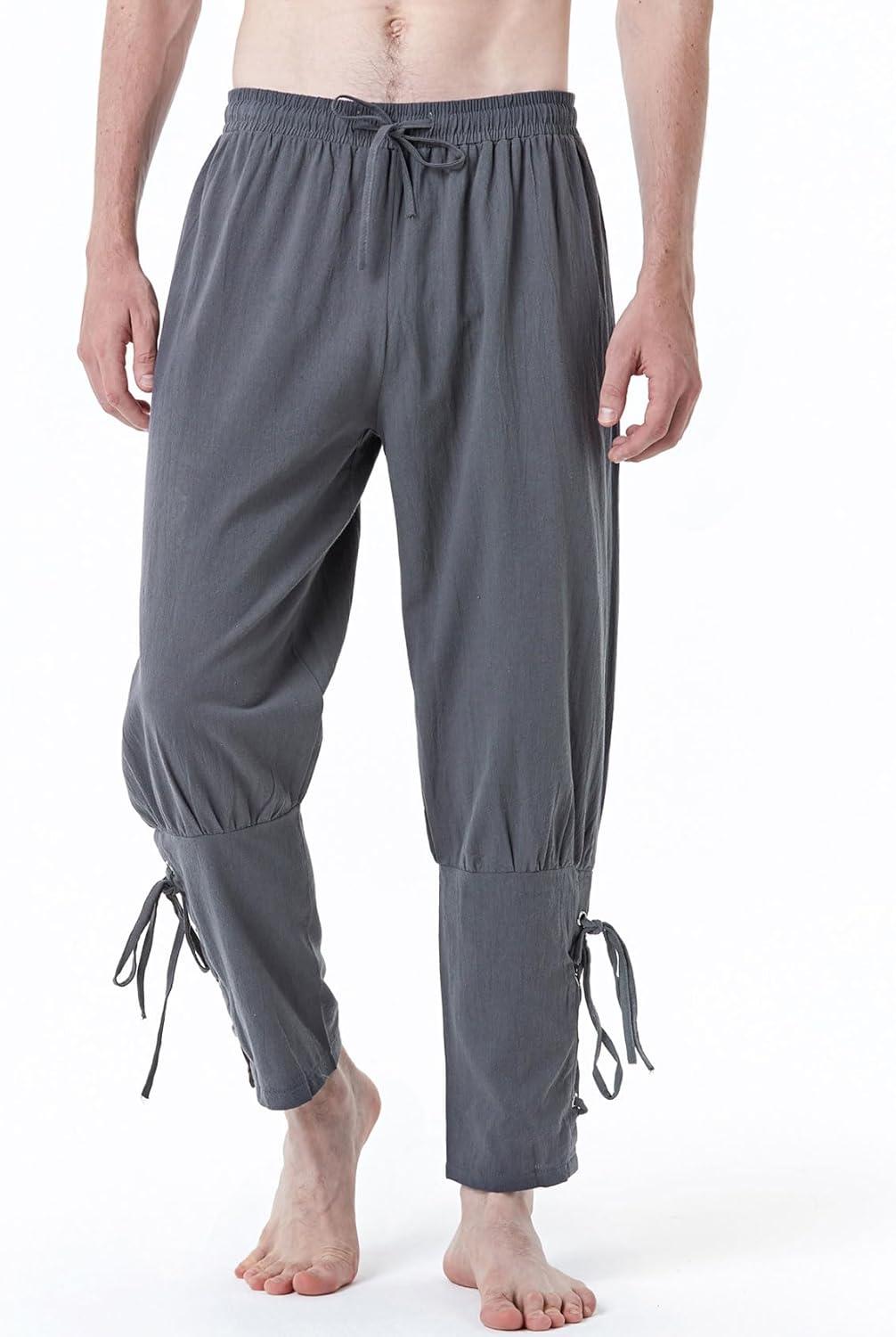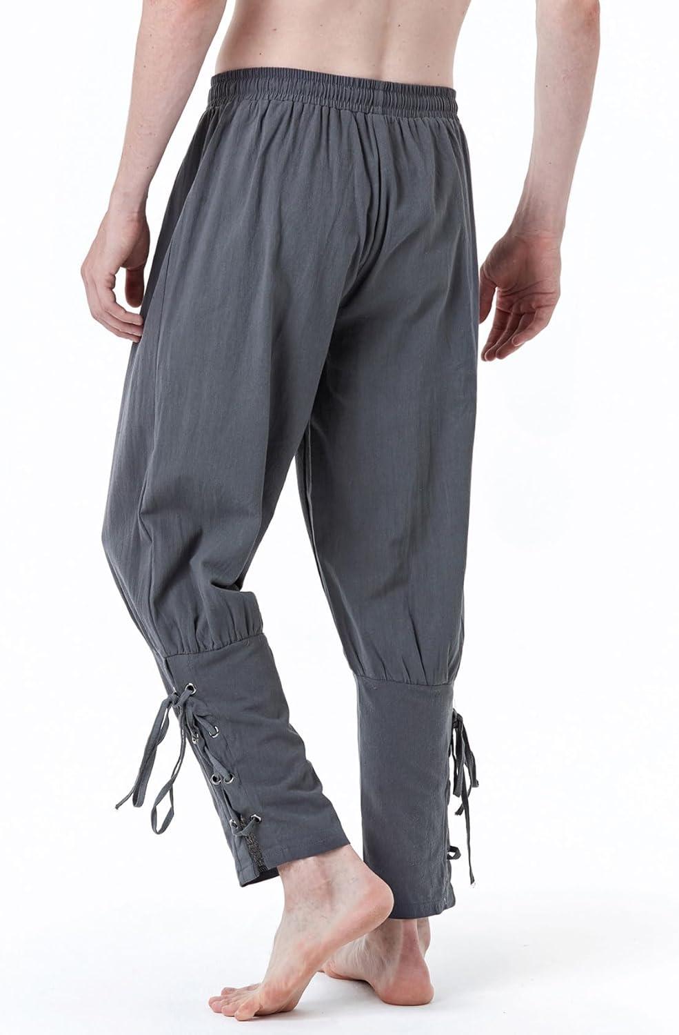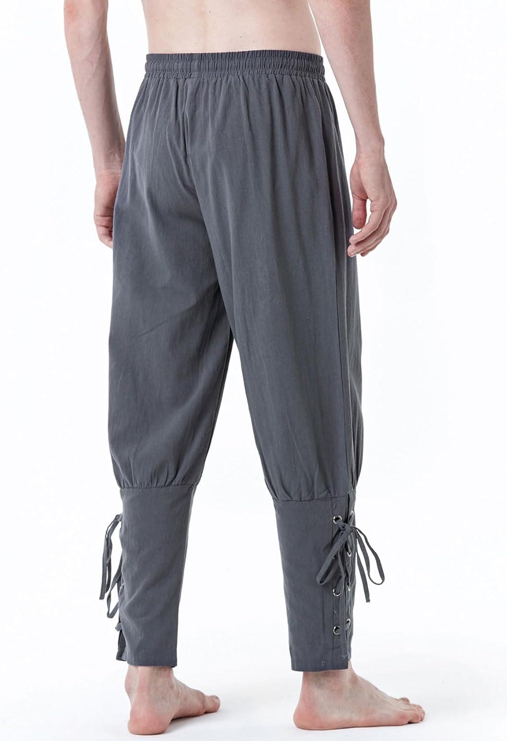 JEMITOP Men's Pure Cotton Vintage Ankle Banded Pants for Renaissance Pirate Viking Medieval Costume(Grey)