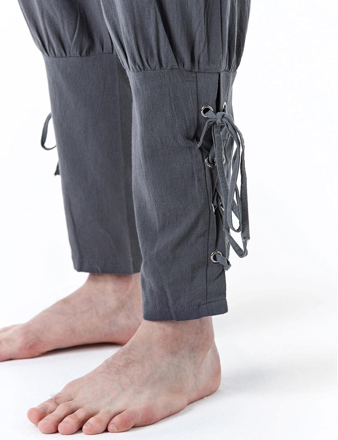 JEMITOP Men’s Pure Cotton Vintage Ankle Banded Pants for Renaissance Pirate Viking Medieval Costume(Grey)