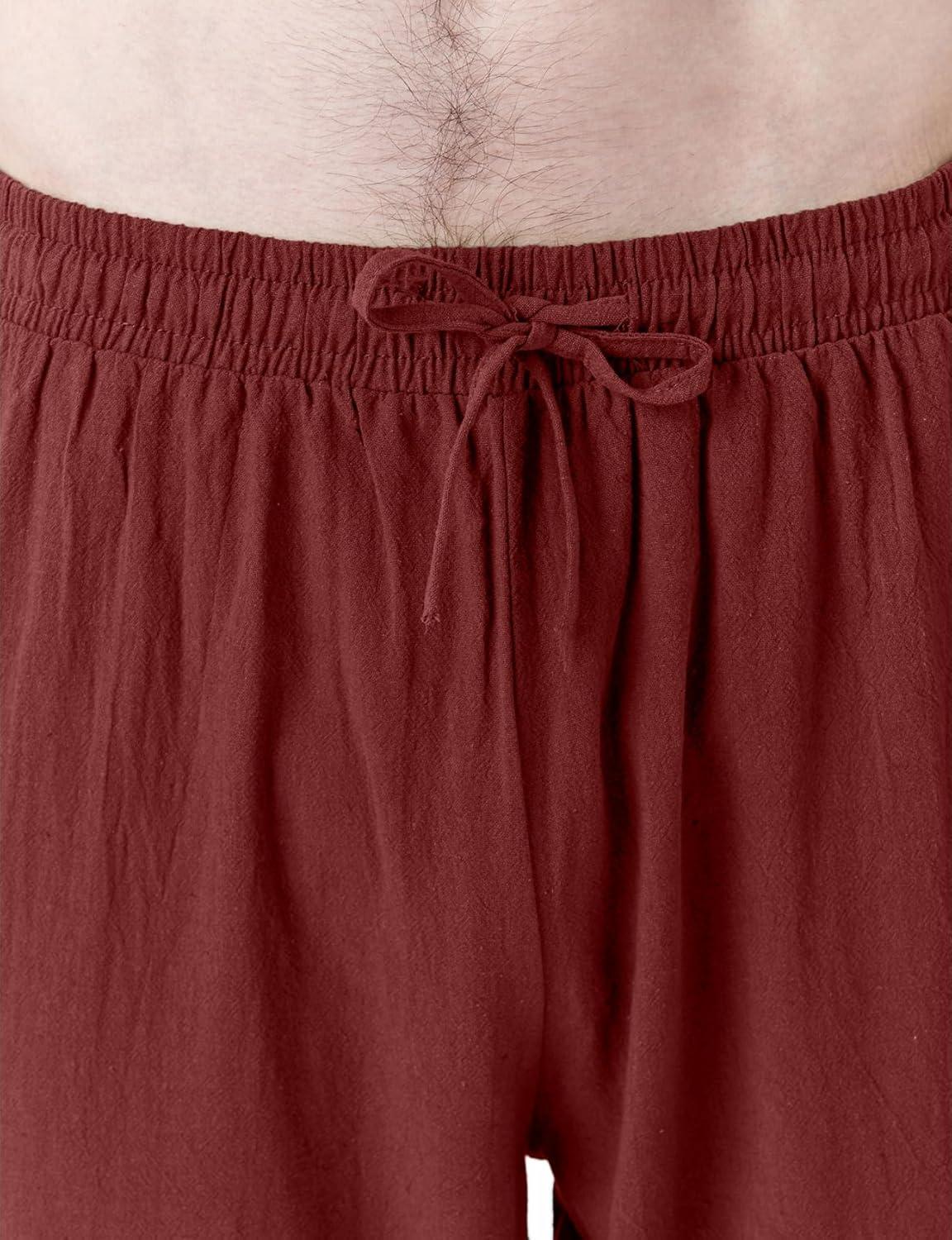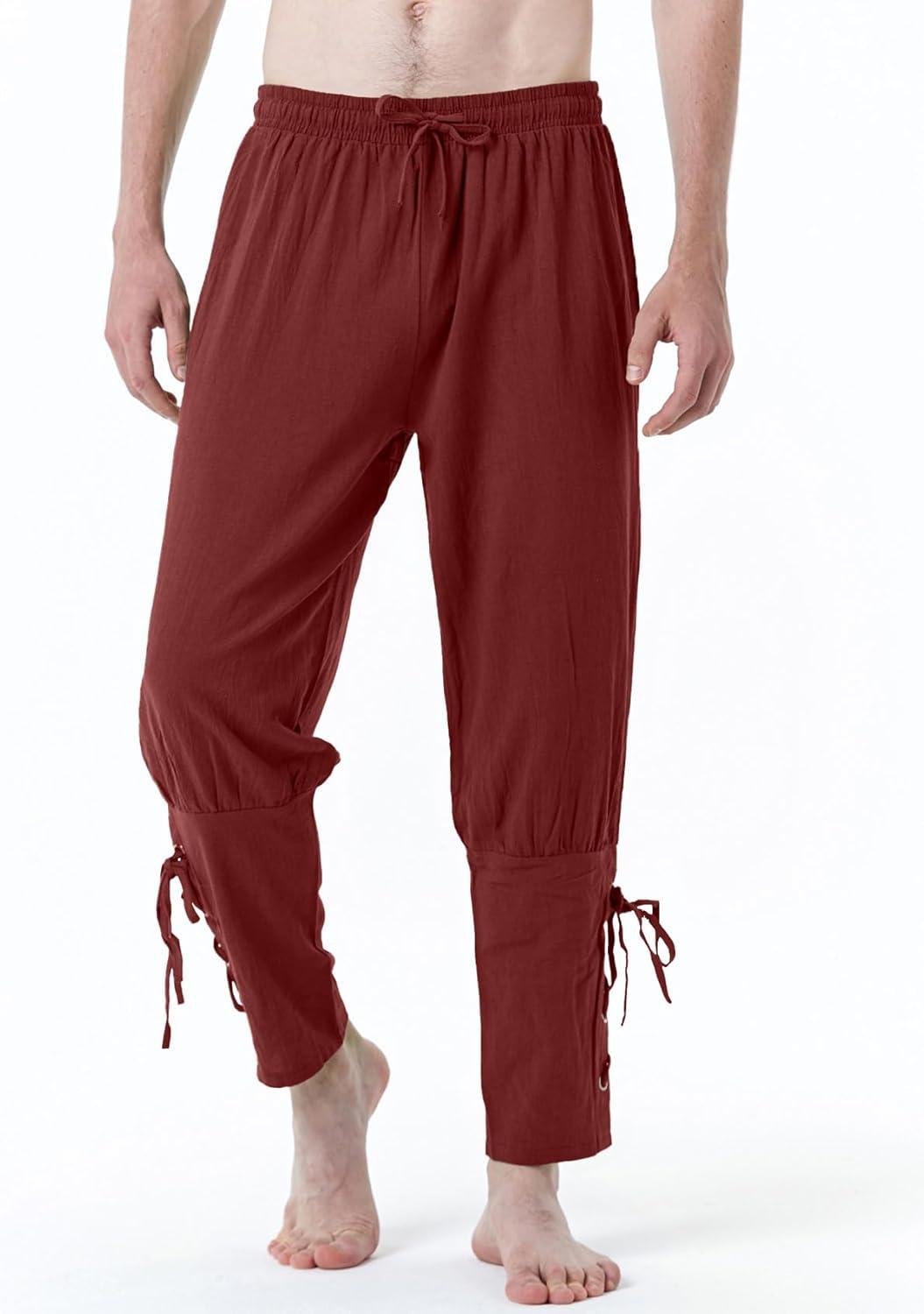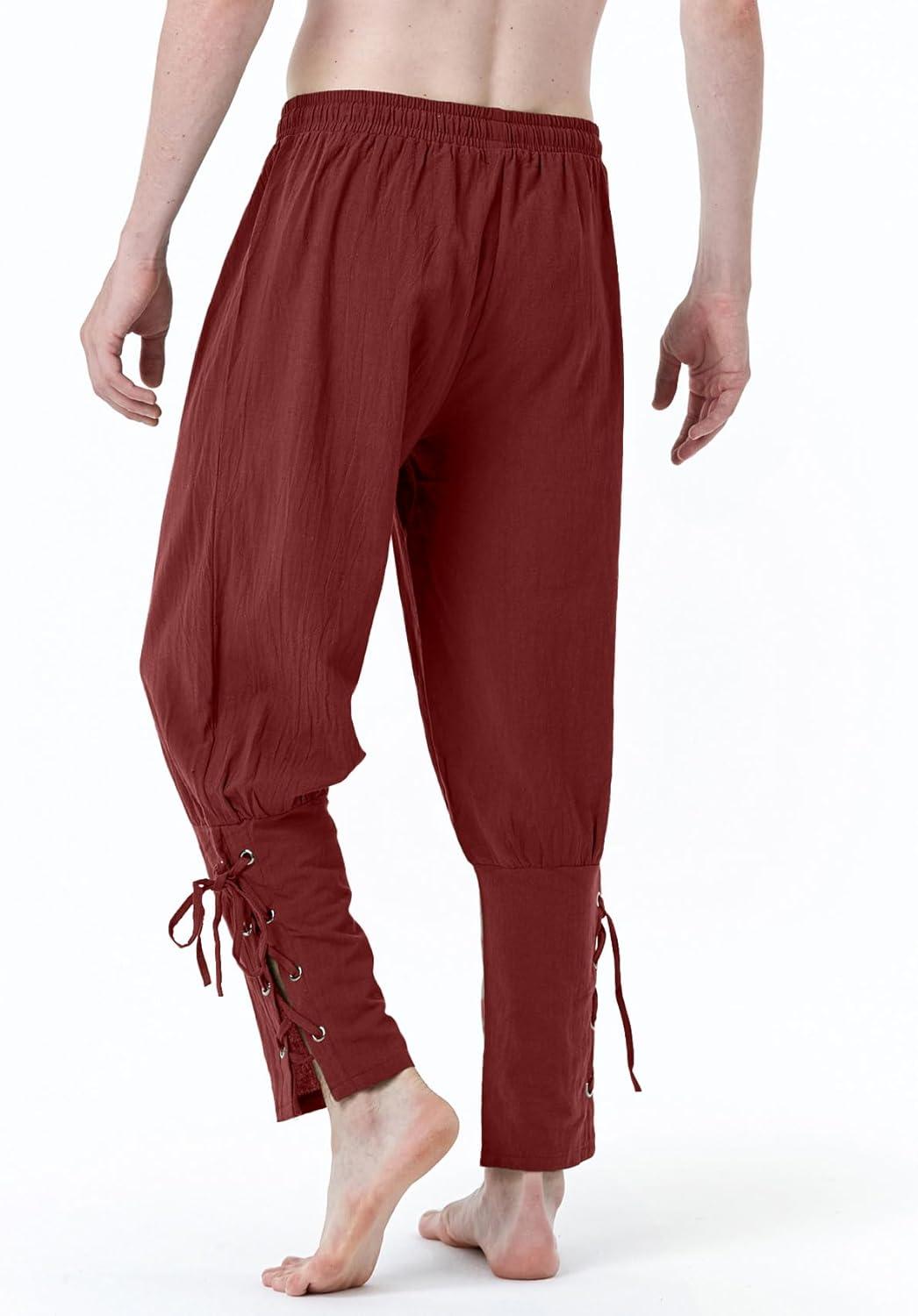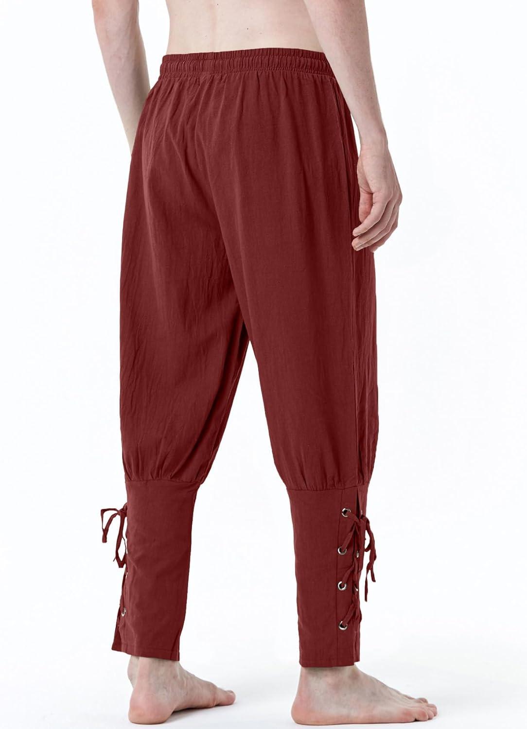 JEMITOP Men’s Pure Cotton Vintage Ankle Banded Pants for Renaissance Pirate Viking Medieval Costume(Rust Red)