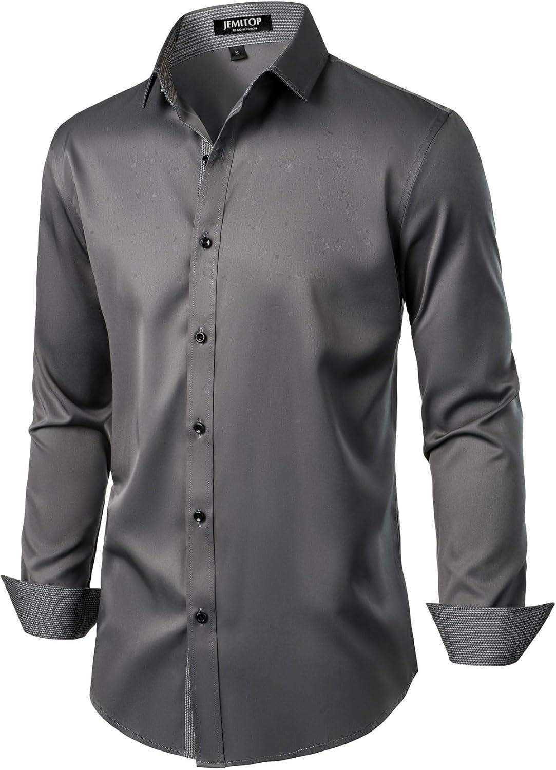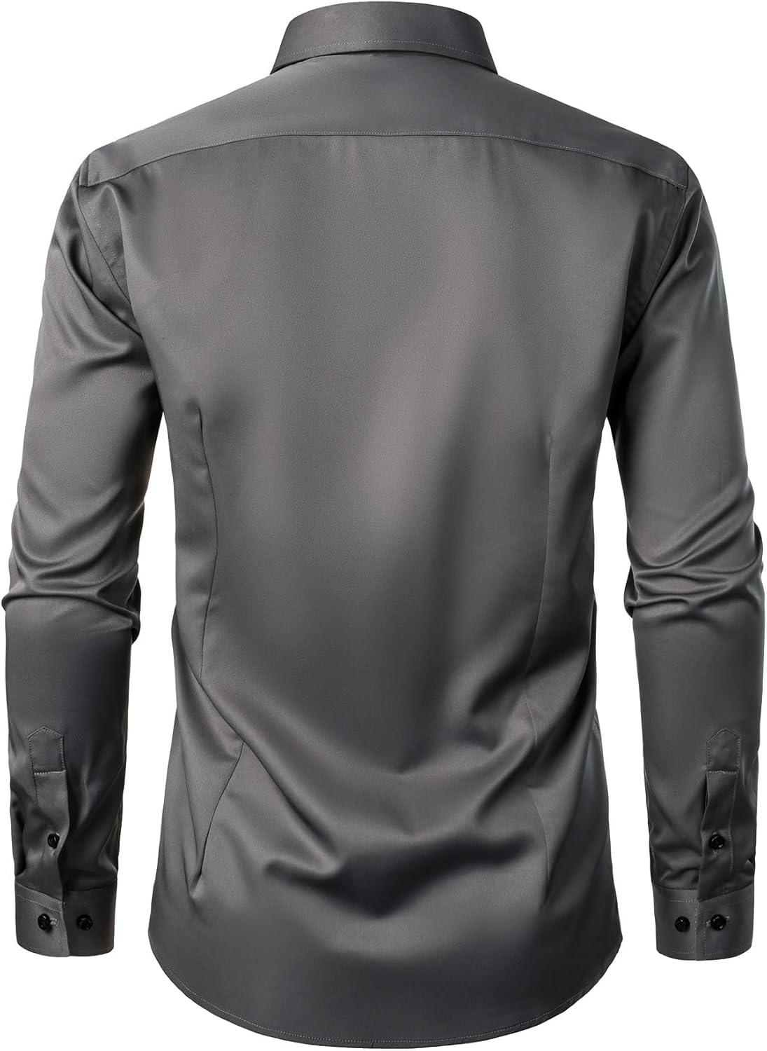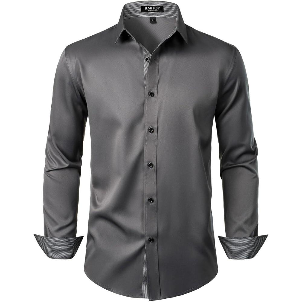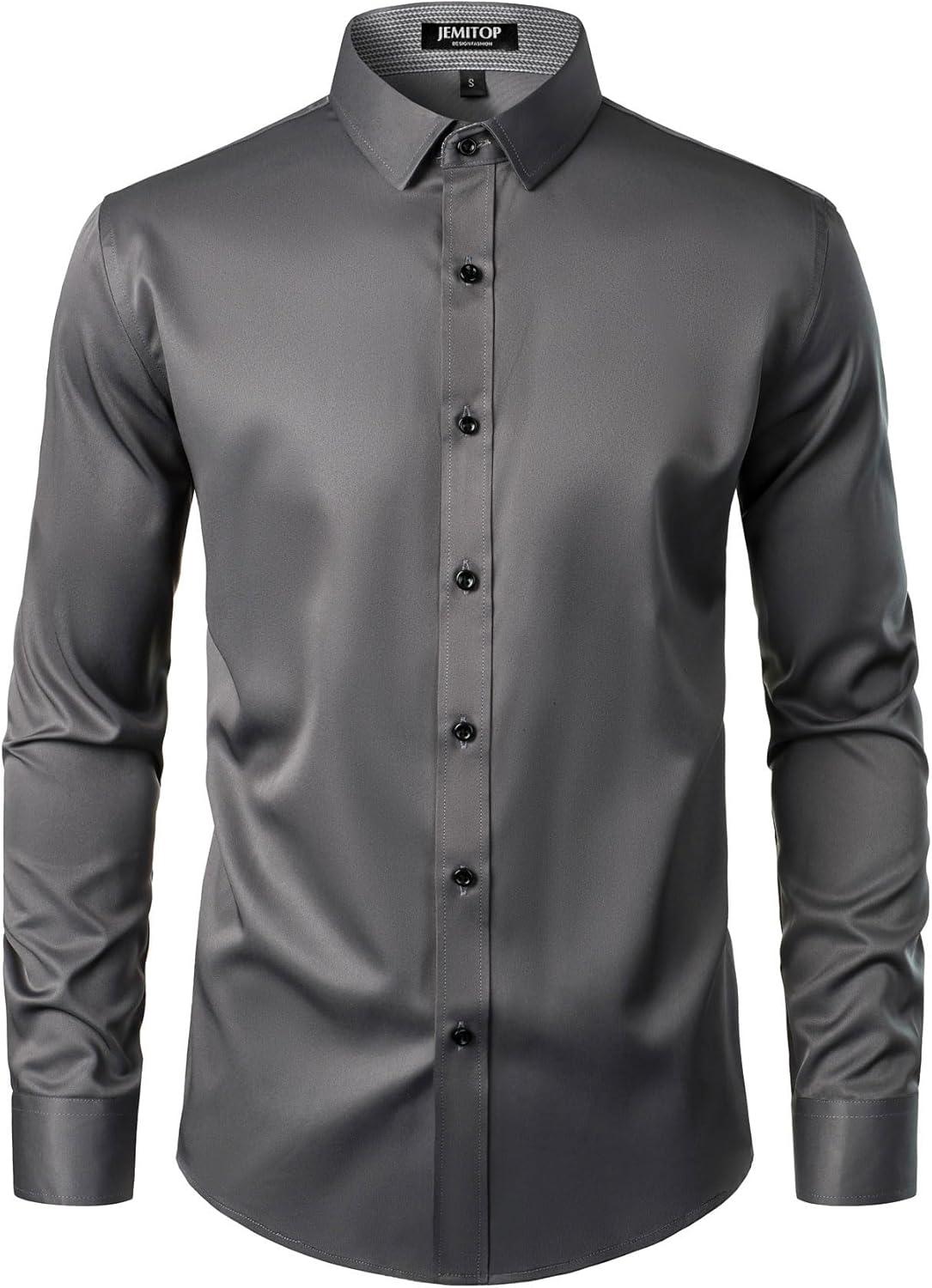 JEMITOP Men's Stretch Multi-Use Long Sleeve Dress Shirts Party Prom Wedding Shirts with Slight Sheen(Dark Grey)