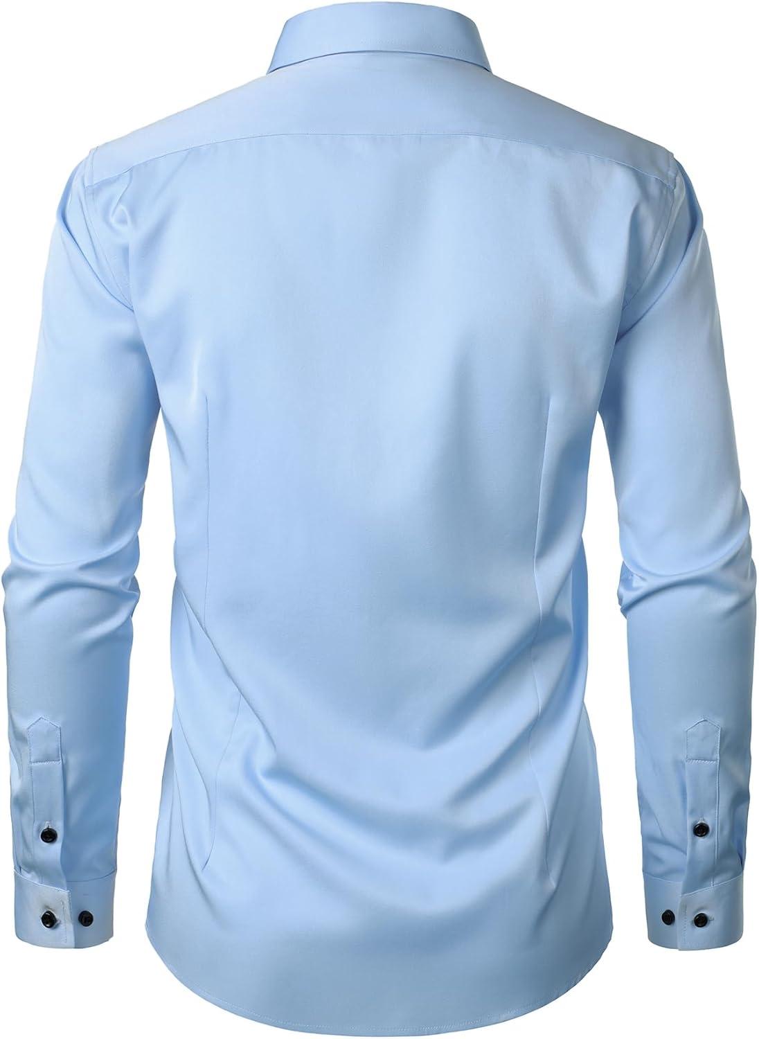 JEMITOP Men’s Stretch Multi-Use Long Sleeve Dress Shirts Party Prom Wedding Shirts with Slight Sheen(Light Blue)