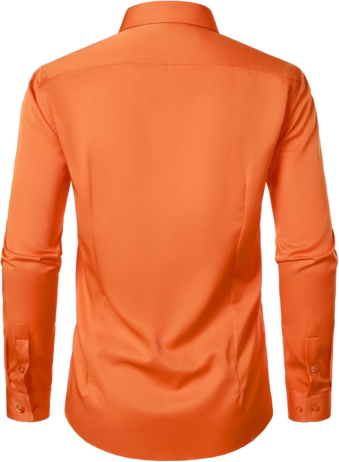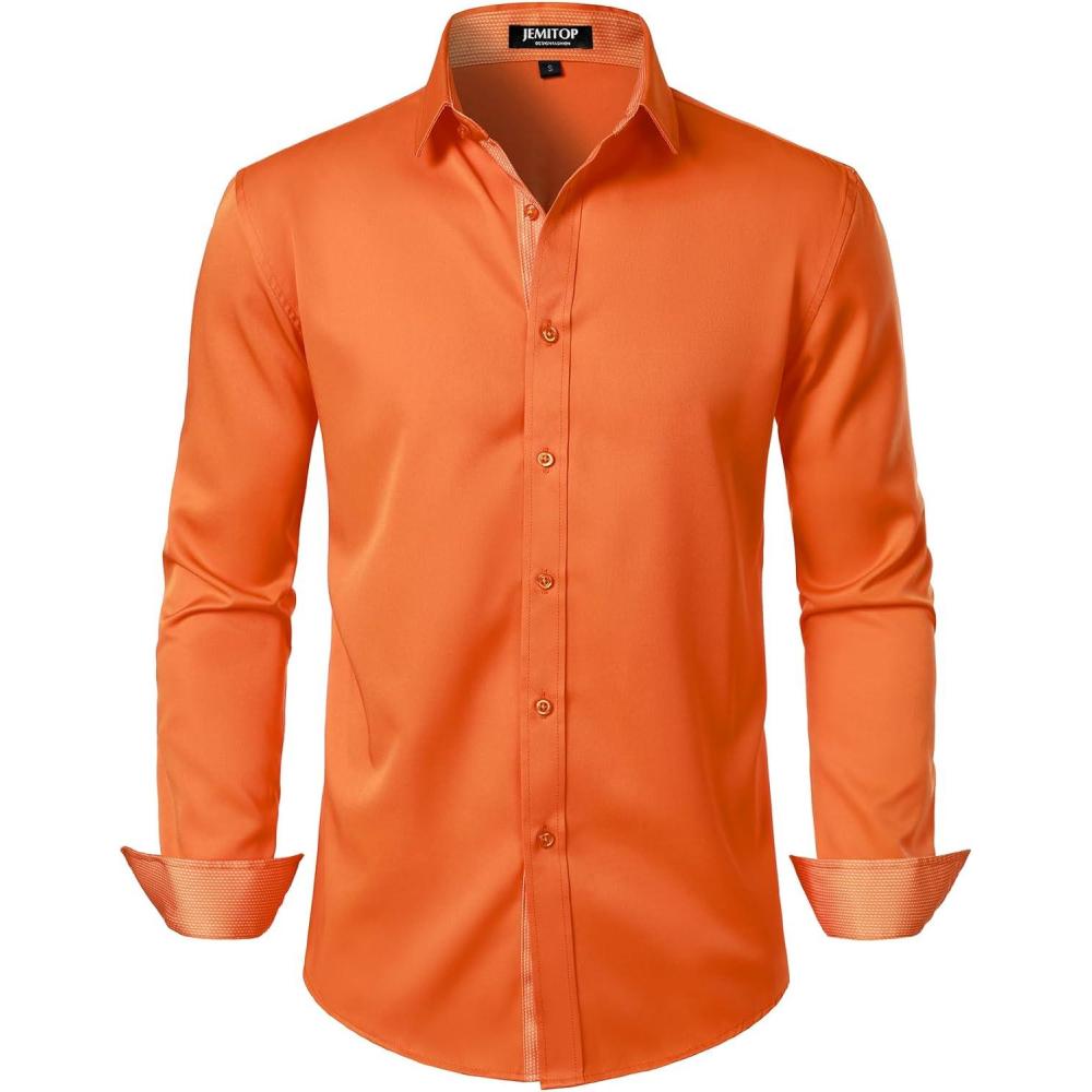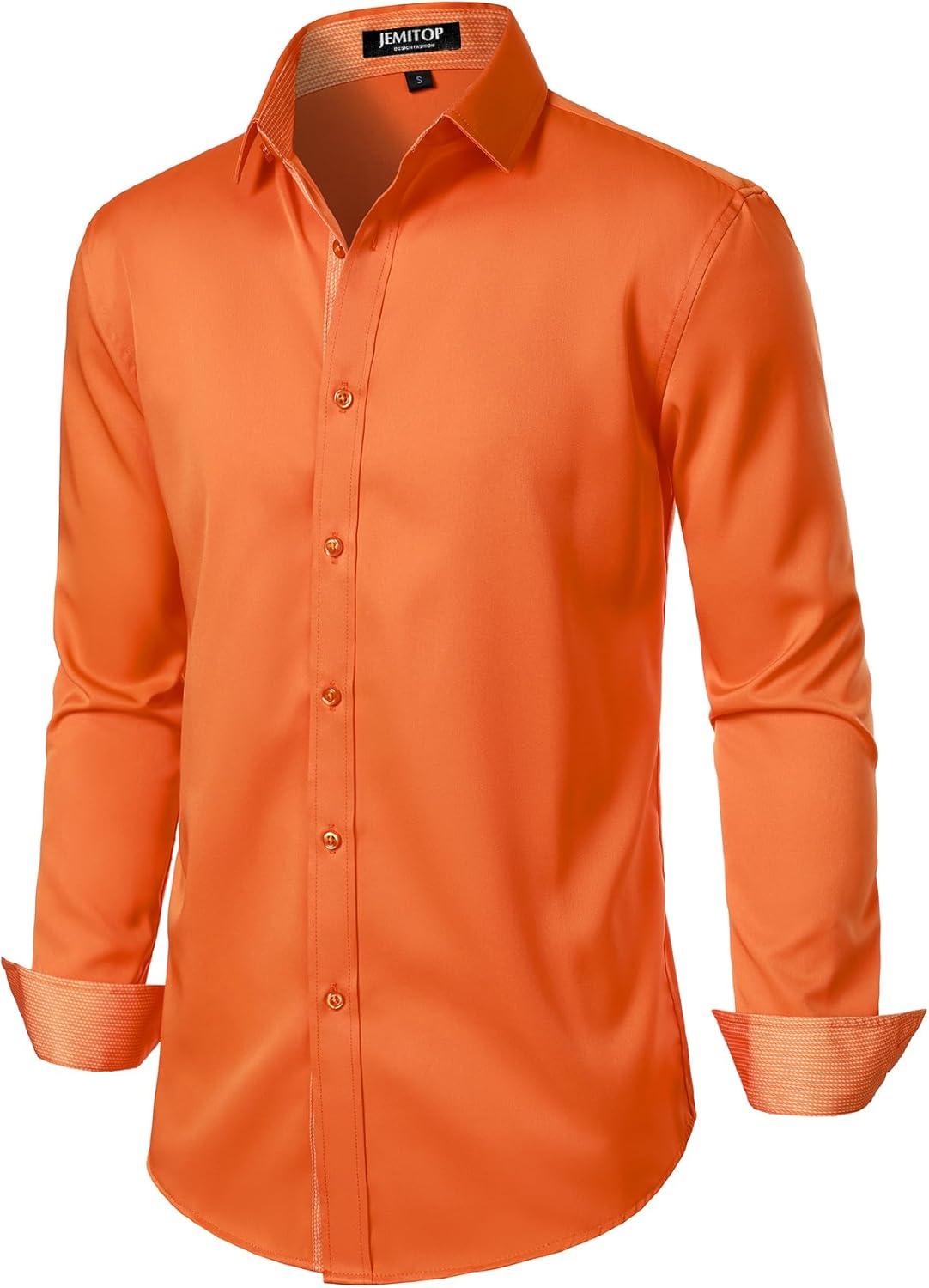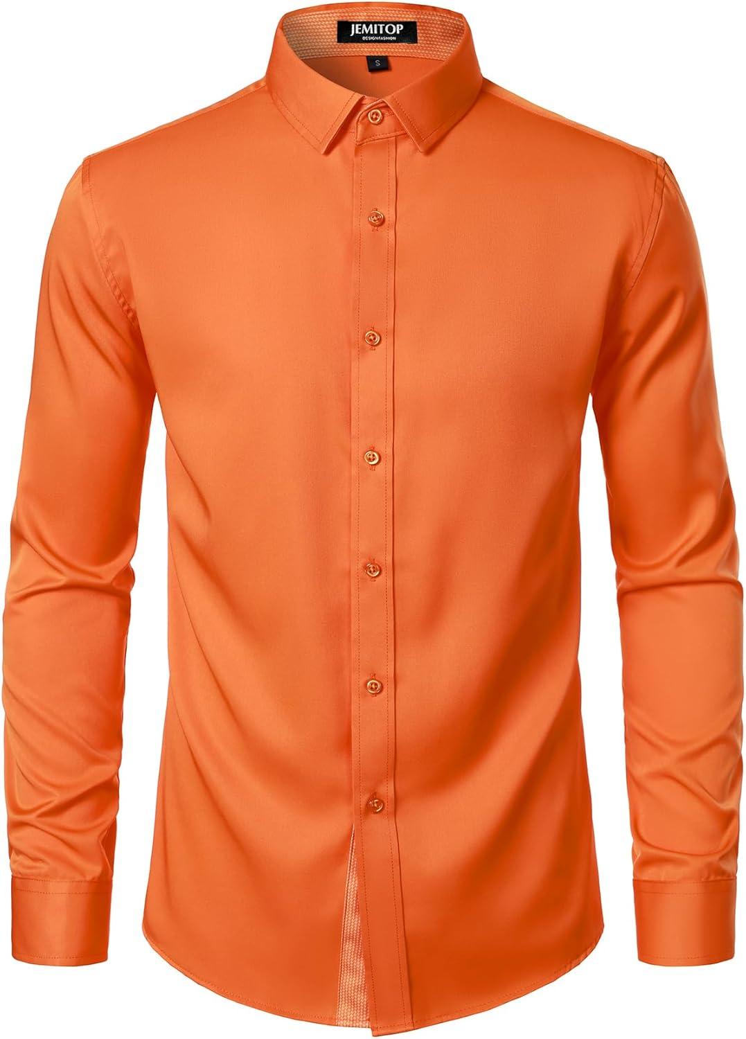 JEMITOP Men's Stretch Multi-Use Long Sleeve Dress Shirts Party Prom Wedding Shirts with Slight Sheen(Orange)