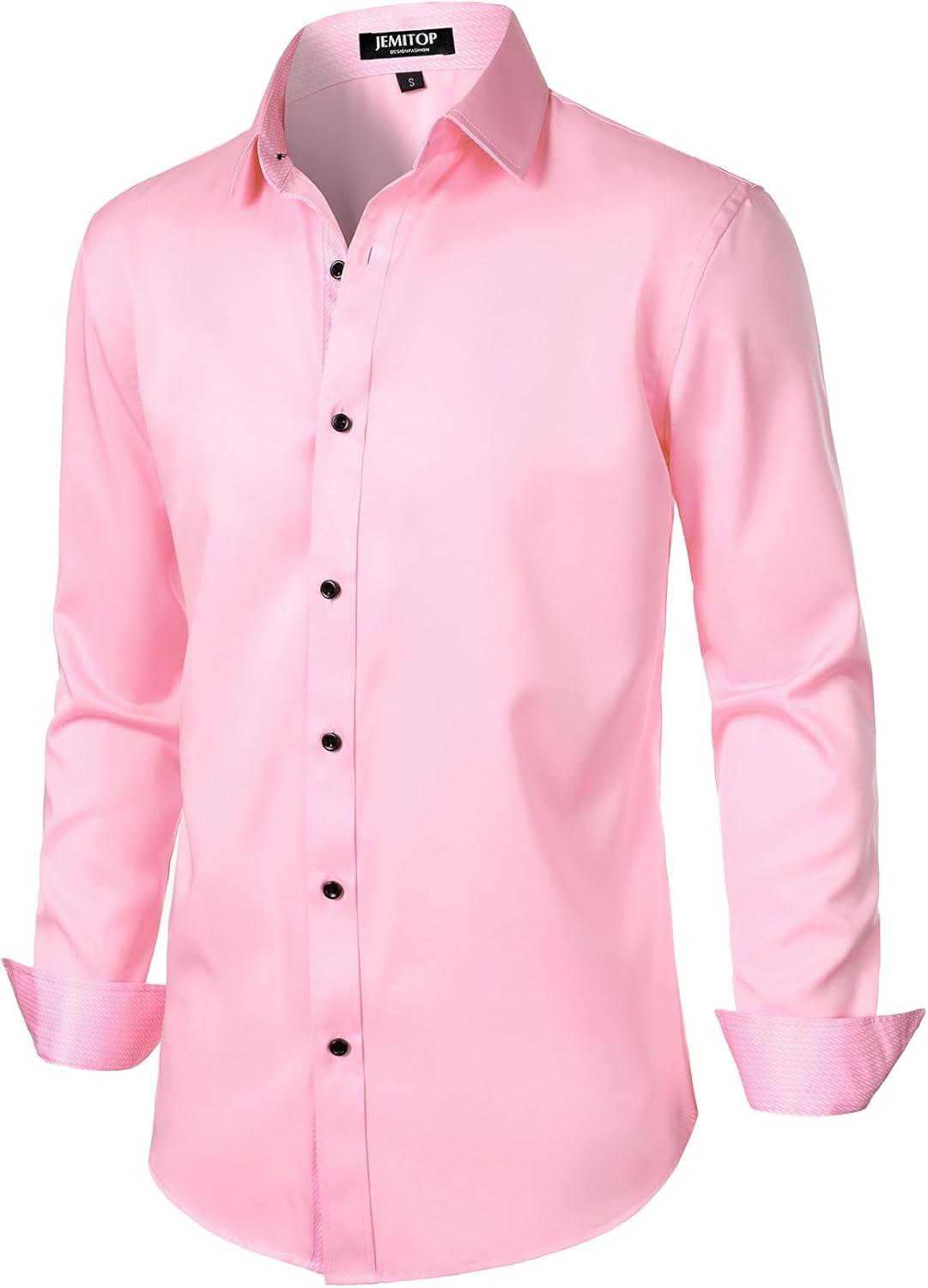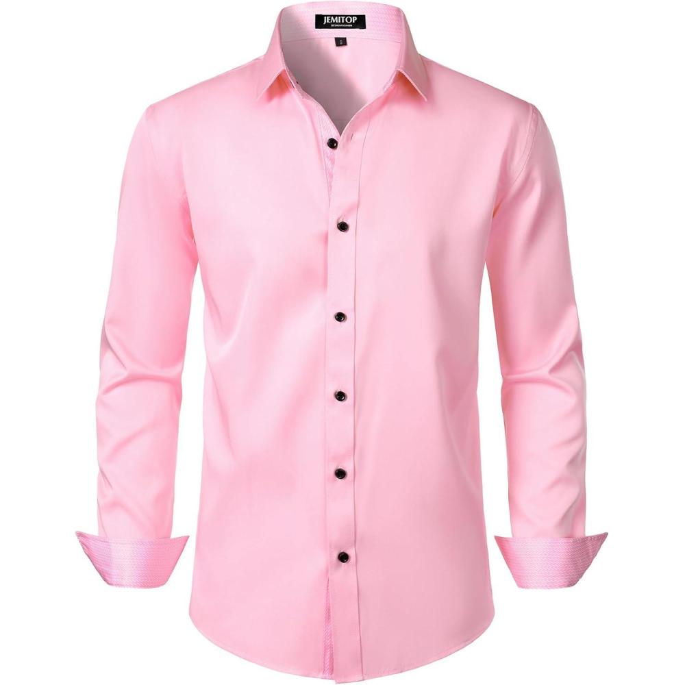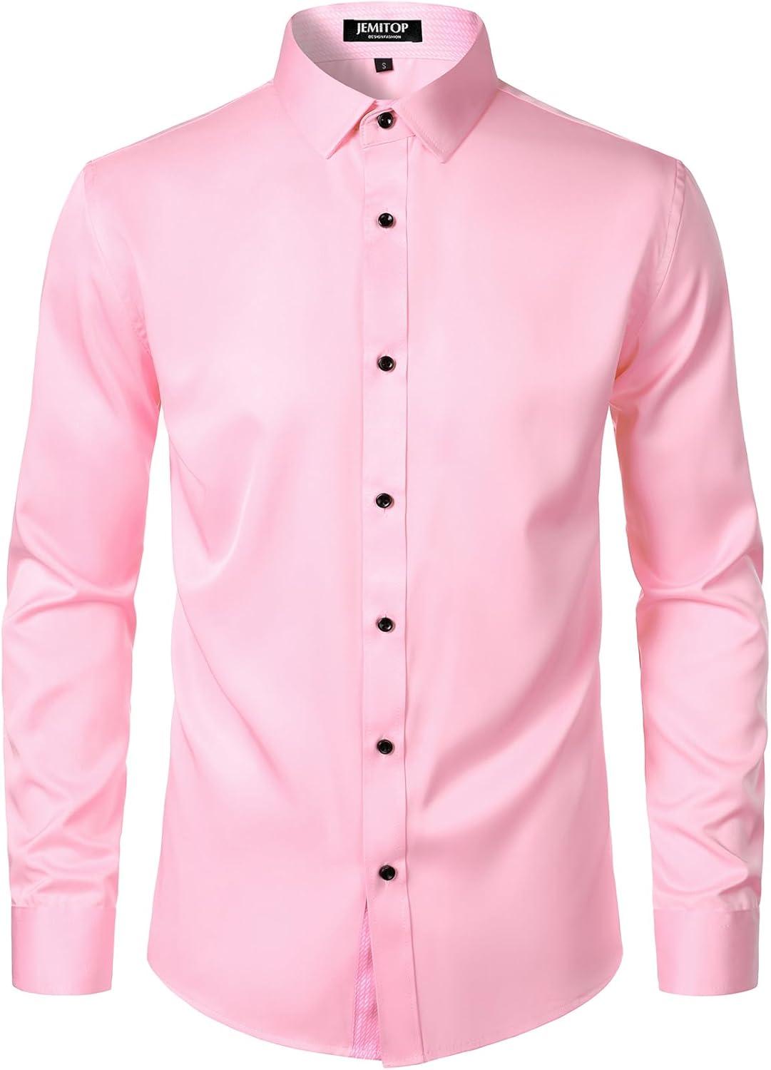 imageJEMITOP Mens Stretch MultiUse Long Sleeve Dress Shirts Party Prom Wedding Shirts with Slight SheenPink