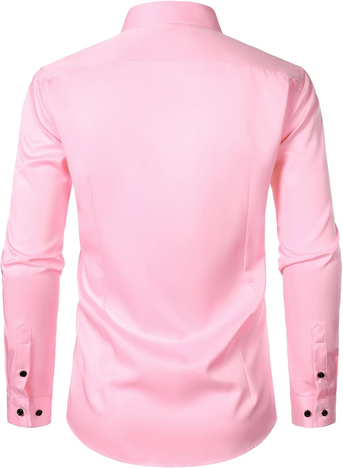 JEMITOP Men’s Stretch Multi-Use Long Sleeve Dress Shirts Party Prom Wedding Shirts with Slight Sheen(Pink)