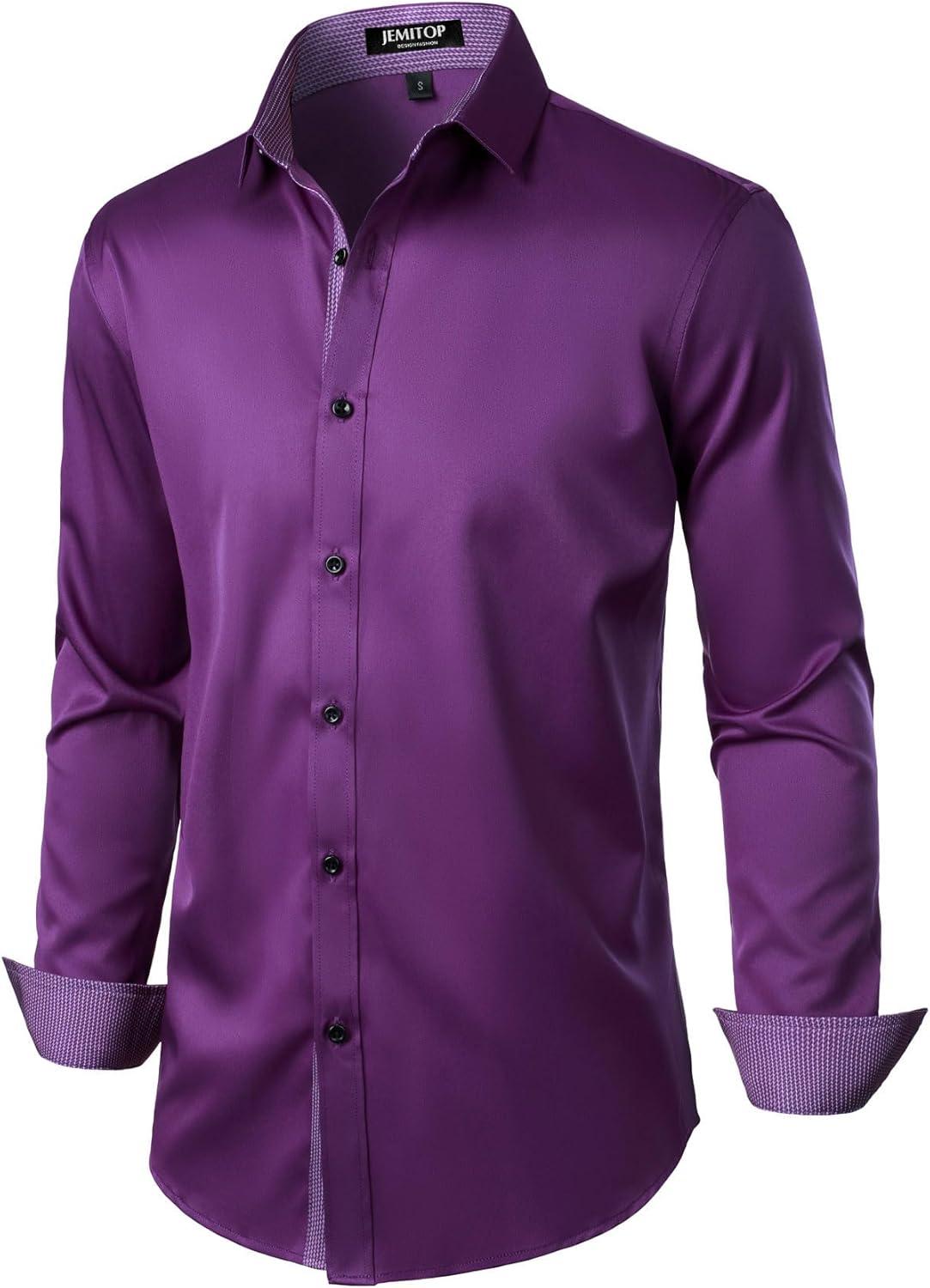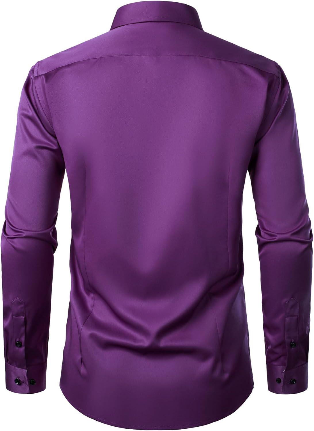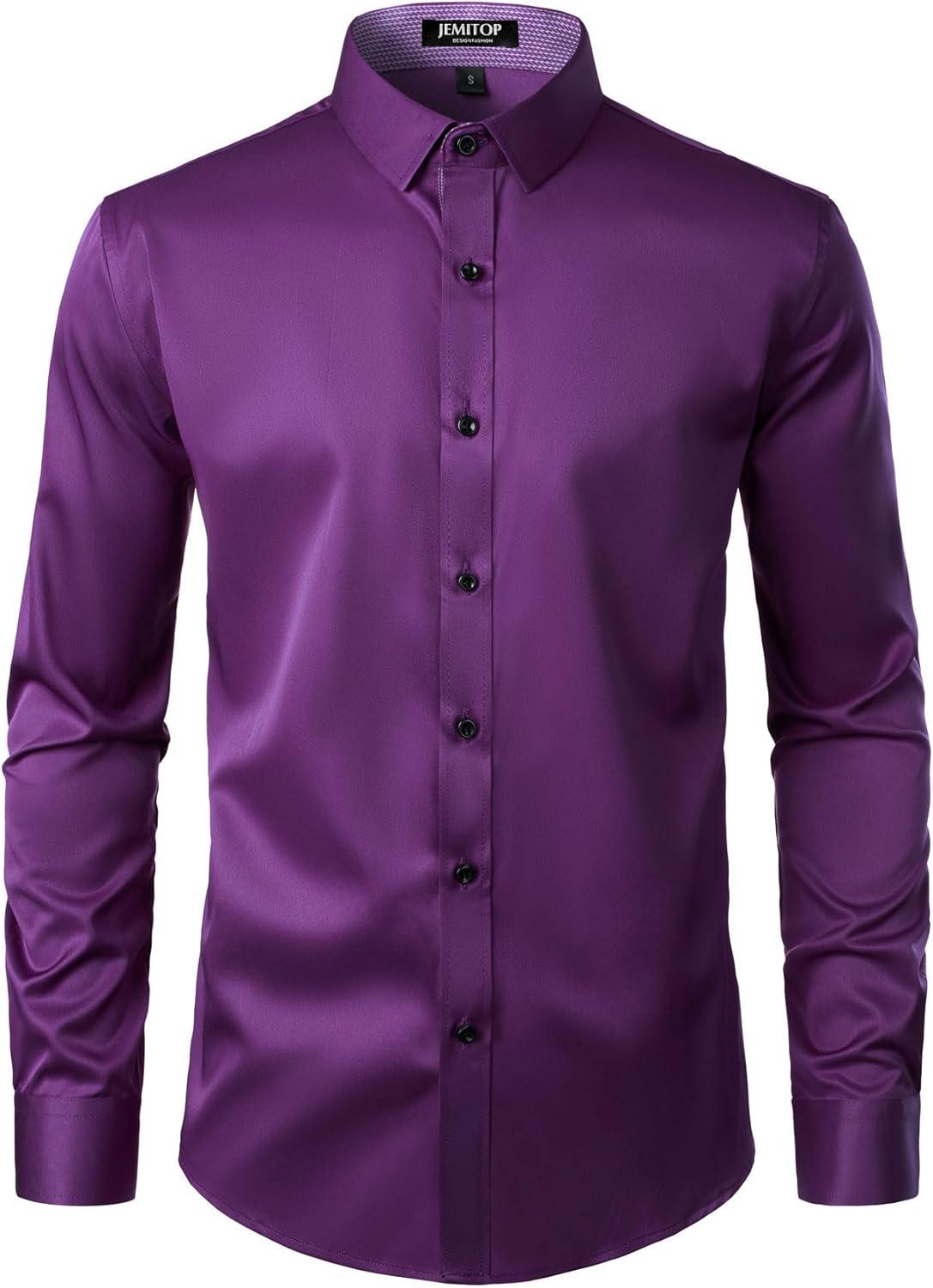 JEMITOP Men’s Stretch Multi-Use Long Sleeve Dress Shirts Party Prom Wedding Shirts with Slight Sheen(Purple)
