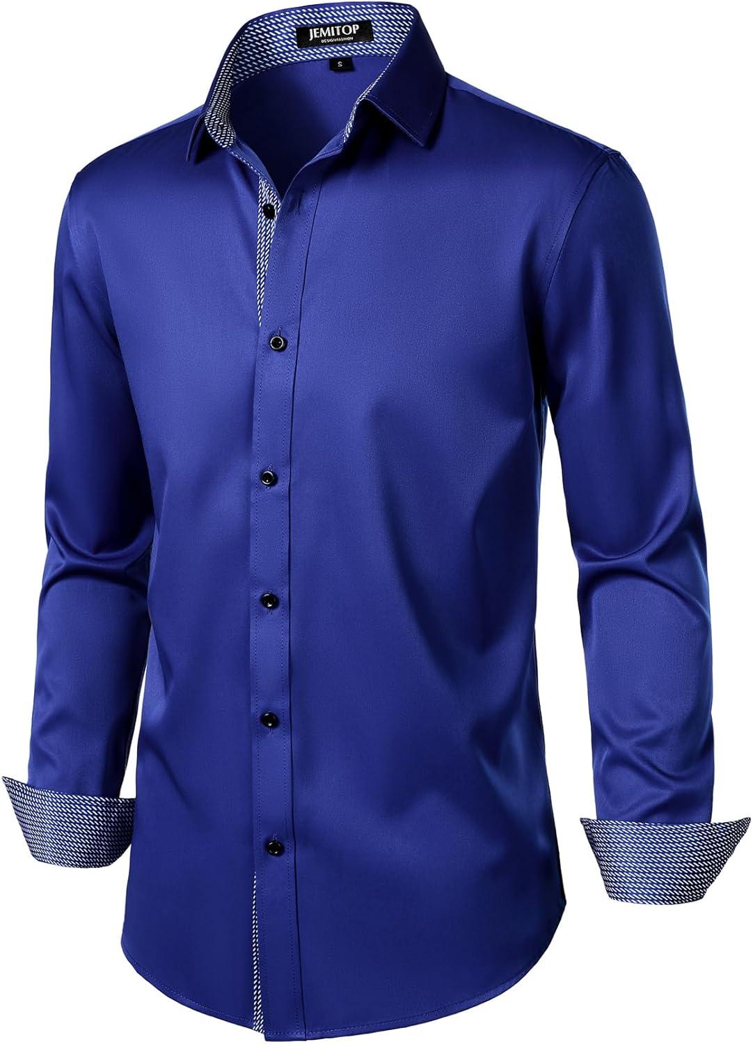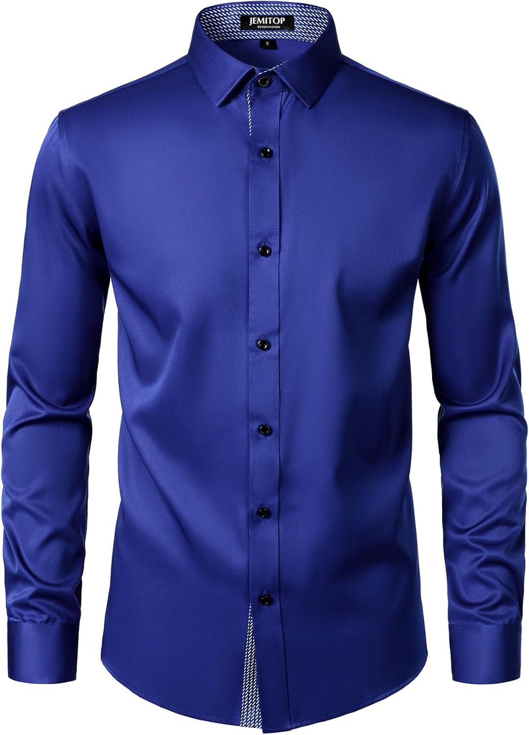 JEMITOP Men’s Stretch Multi-Use Long Sleeve Dress Shirts Party Prom Wedding Shirts with Slight Sheen(Royal Blue)
