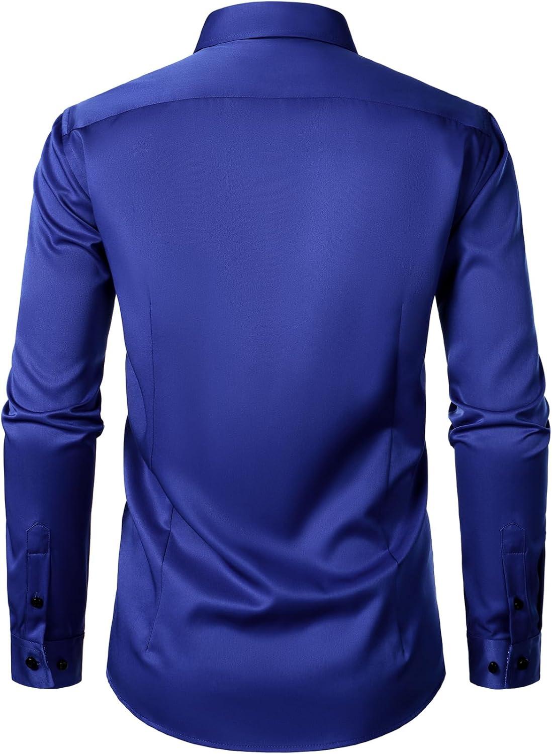 JEMITOP Men's Stretch Multi-Use Long Sleeve Dress Shirts Party Prom Wedding Shirts with Slight Sheen(Royal Blue)
