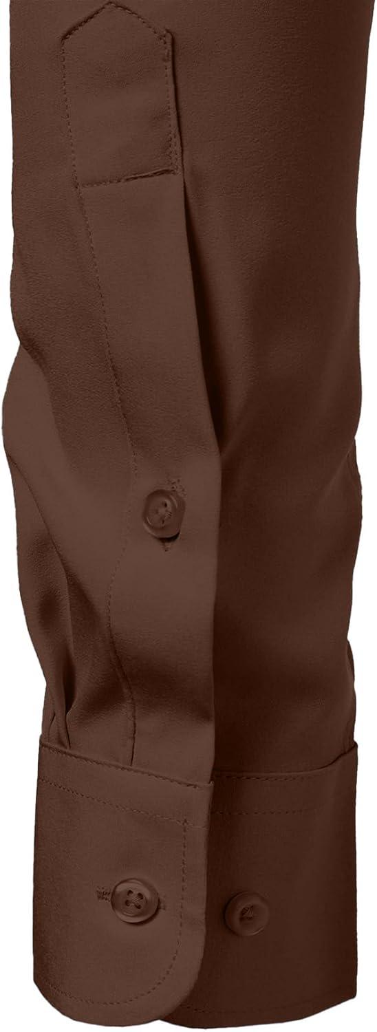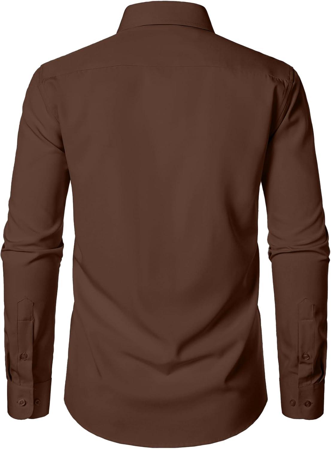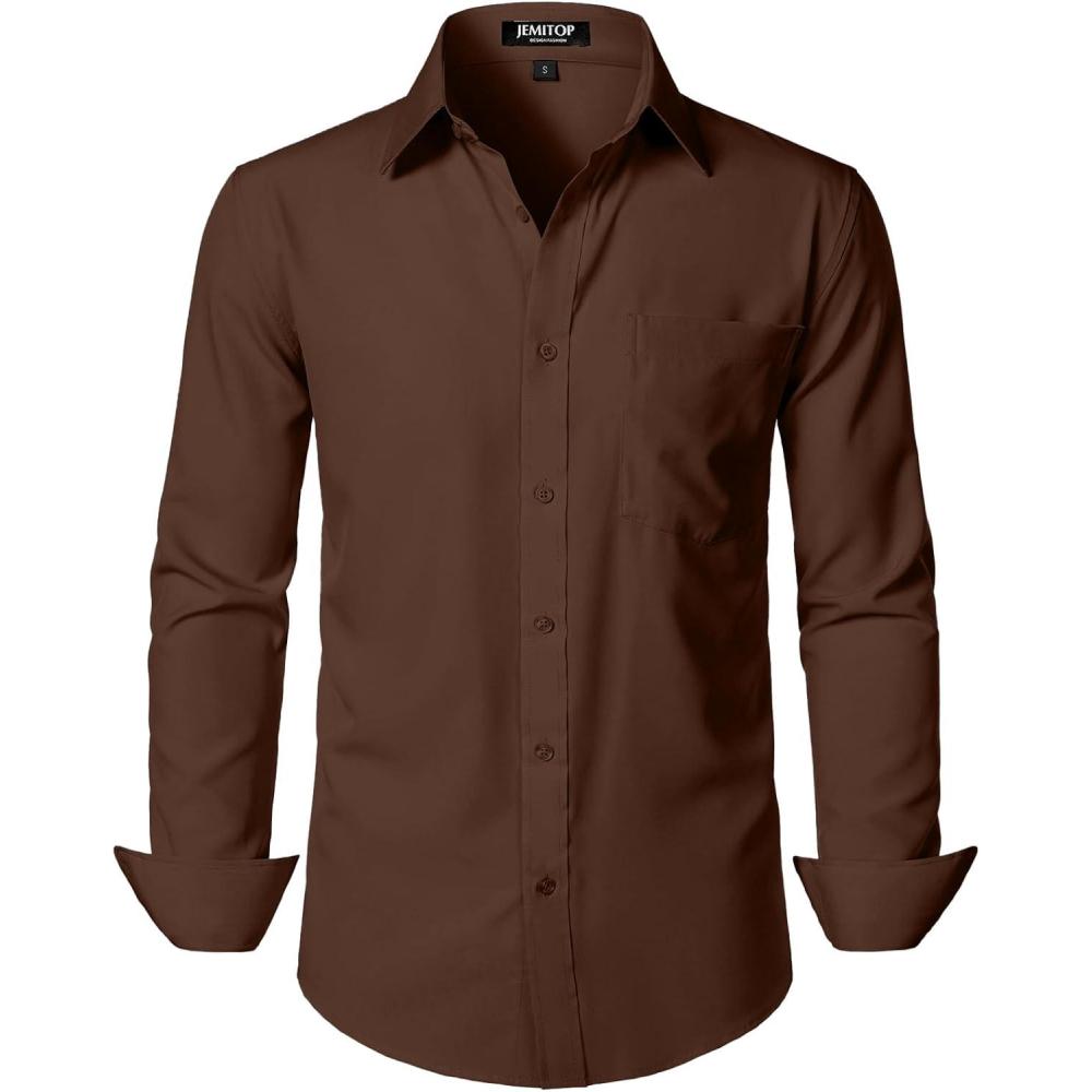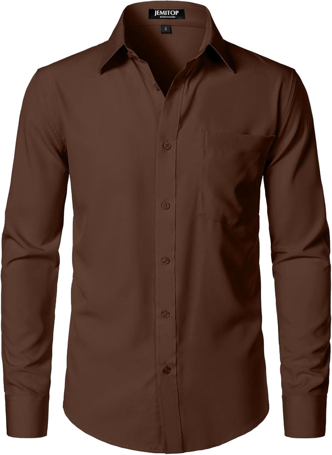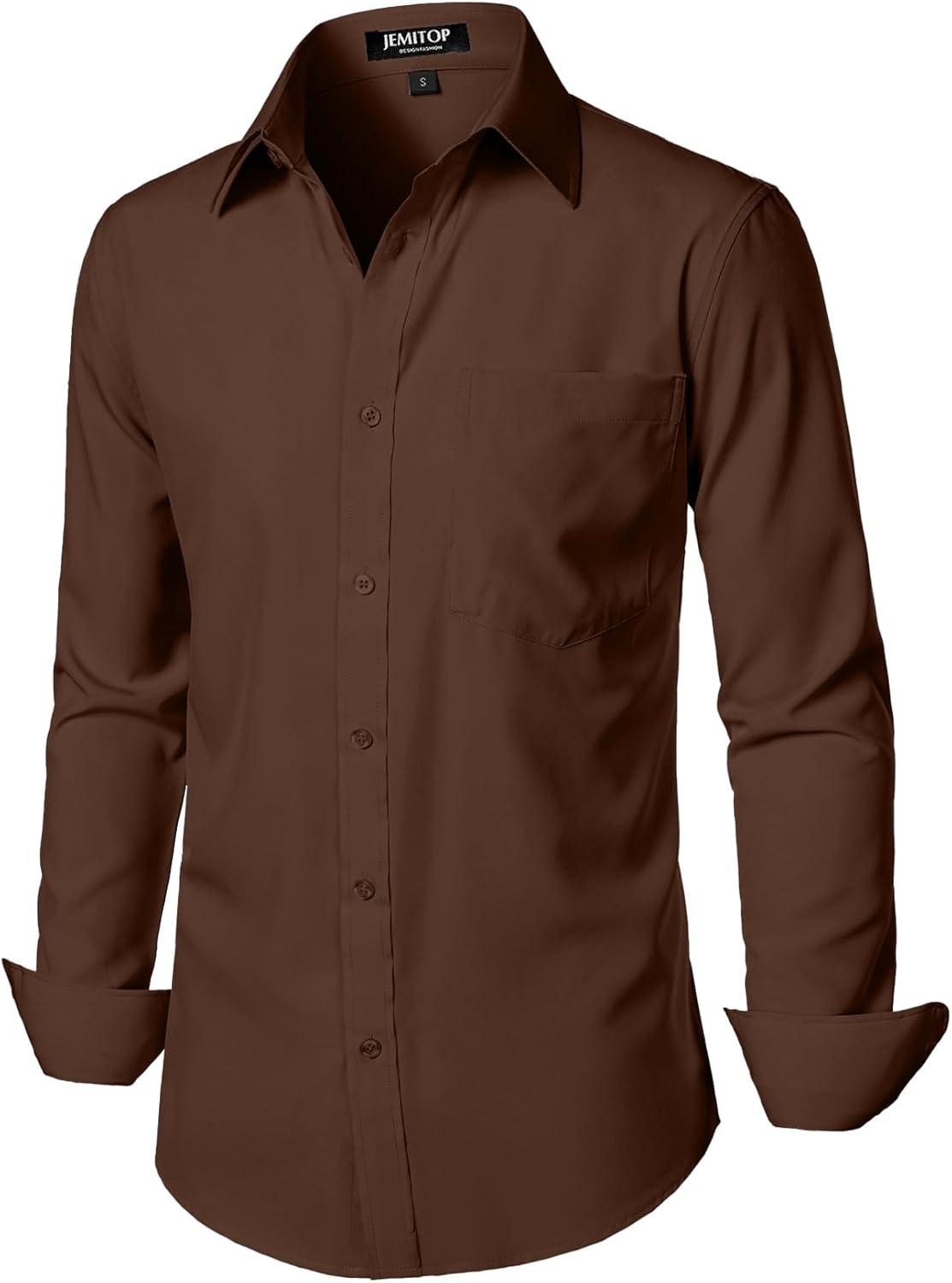 JEMITOP Men's Stretch Regular Fit Long Sleeve Dress Shirts Lightweight Business Casual Button Down Shirts with Pocket(Brown)