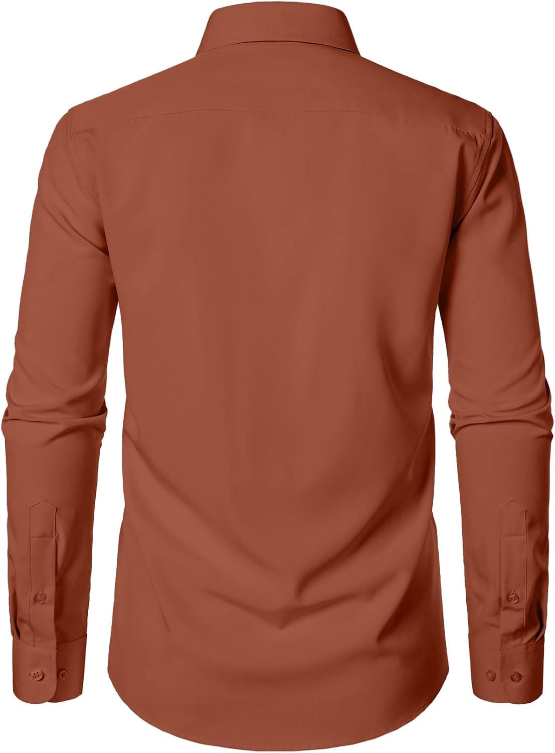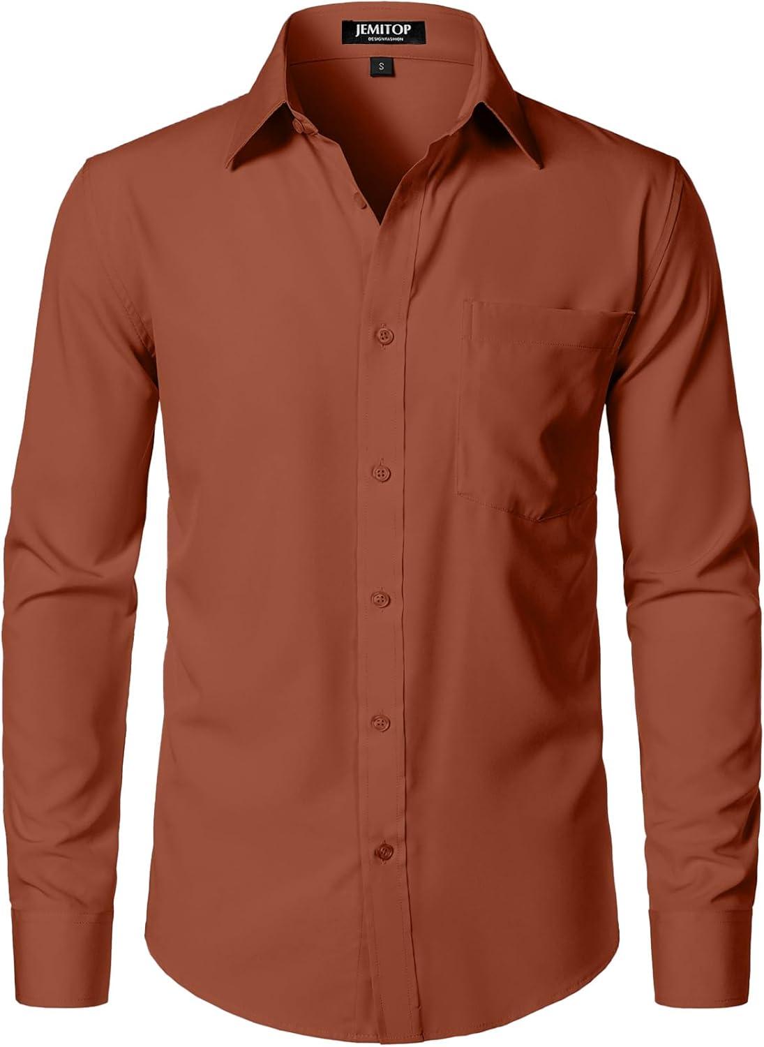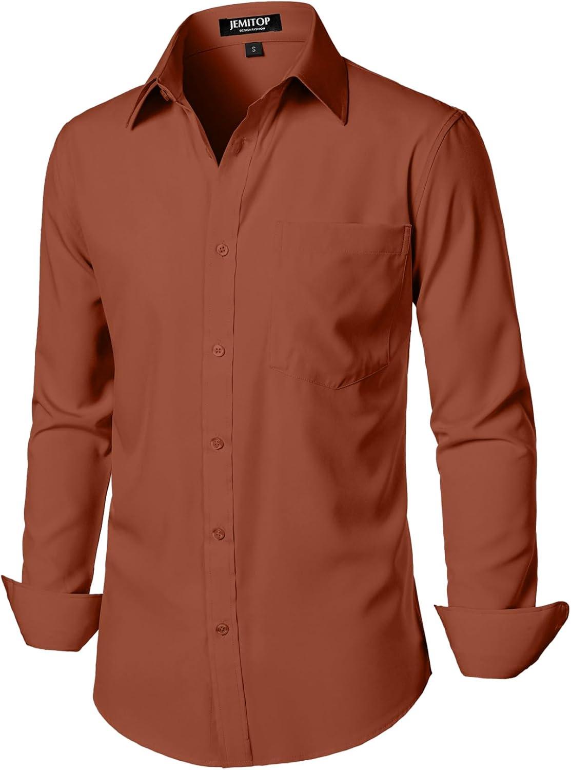 JEMITOP Men's Stretch Regular Fit Long Sleeve Dress Shirts Lightweight Business Casual Button Down Shirts with Pocket(Rust Red)