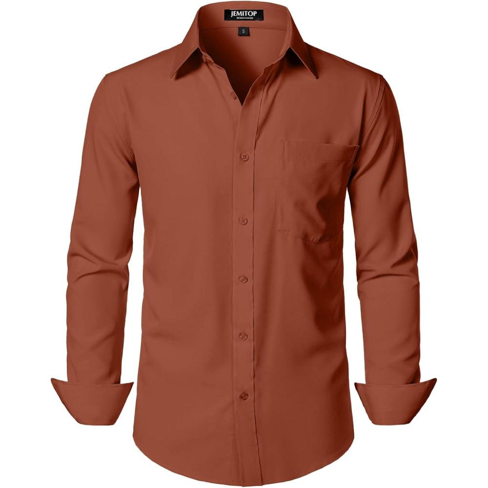 JEMITOP Men’s Stretch Regular Fit Long Sleeve Dress Shirts Lightweight Business Casual Button Down Shirts with Pocket(Rust Red)