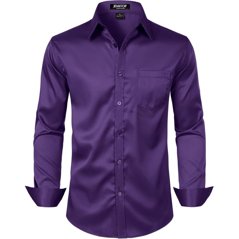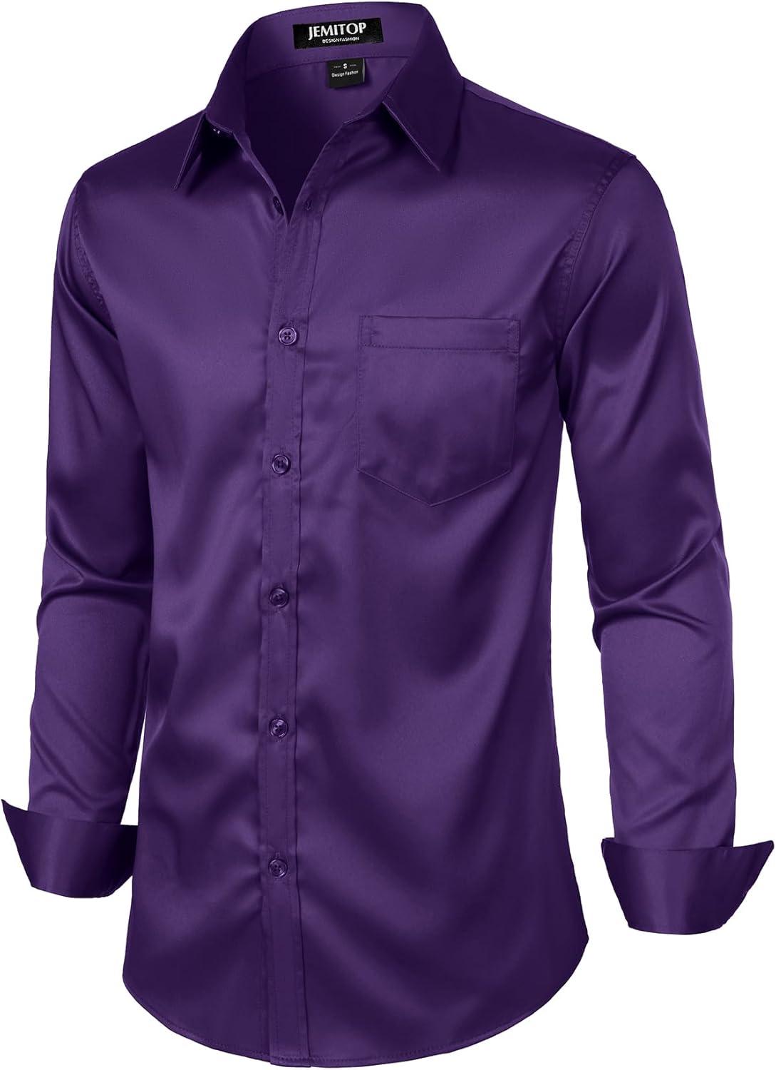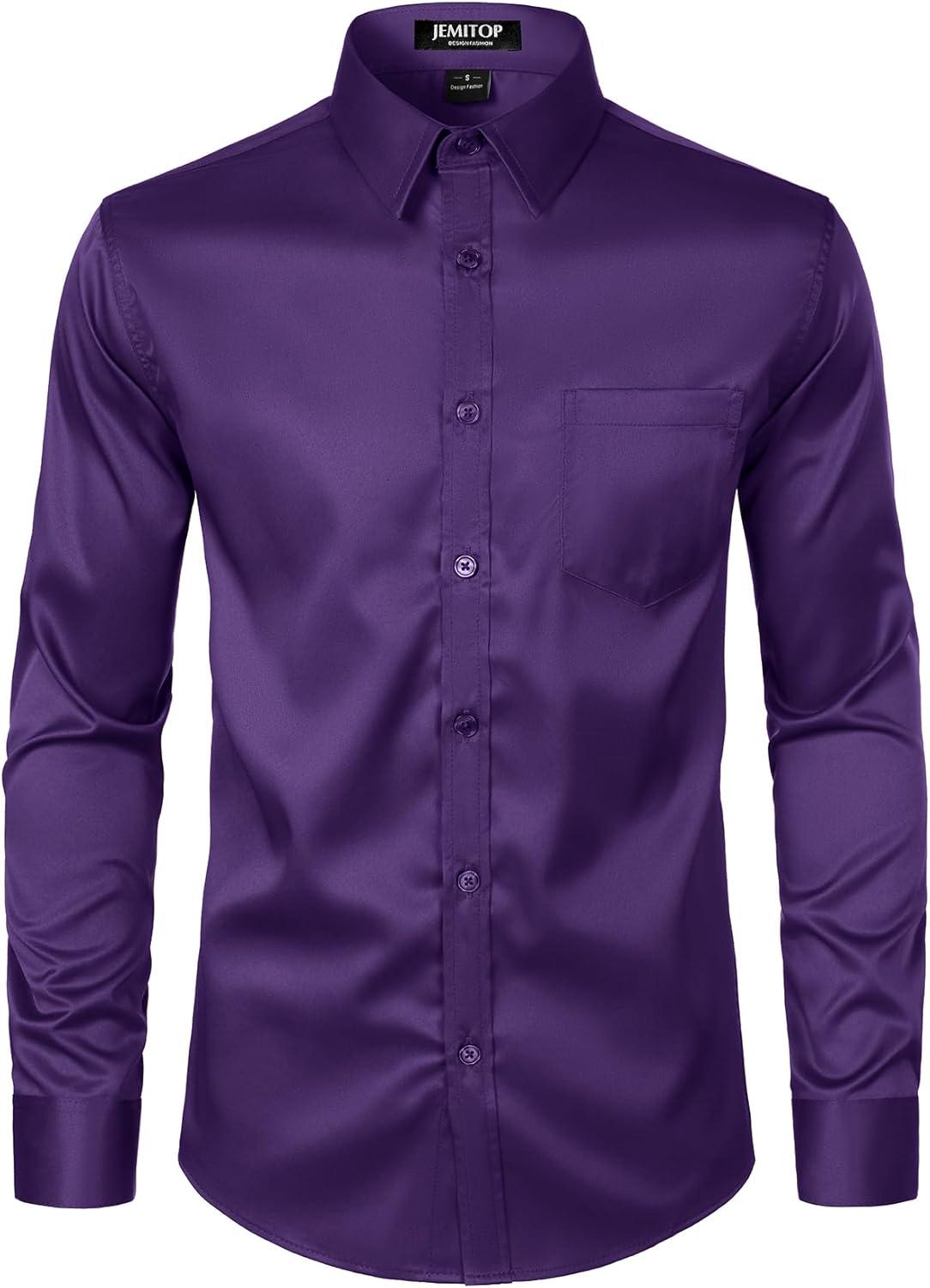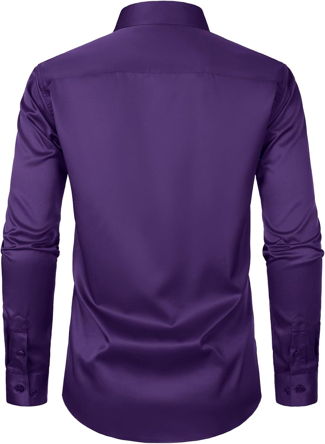 JEMITOP Men's Stretch Slim Fit Dress Shirts Formal Wedding Prom Business Long Sleeve Button Down Shirt with Pocket(Purple)