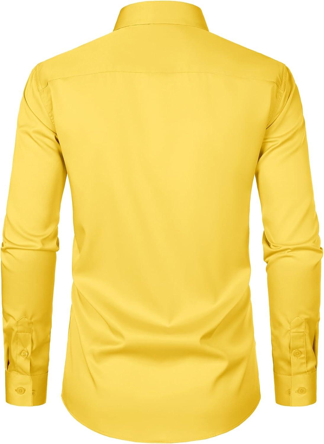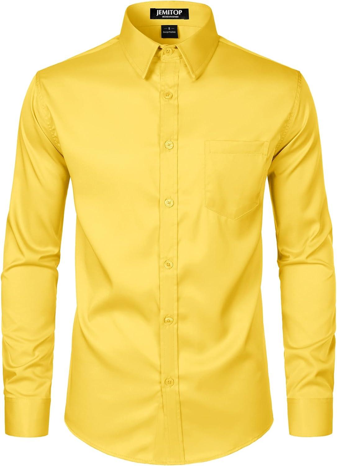 JEMITOP Men's Stretch Slim Fit Dress Shirts Formal Wedding Prom Business Long Sleeve Button Down Shirt with Pocket(Yellow)