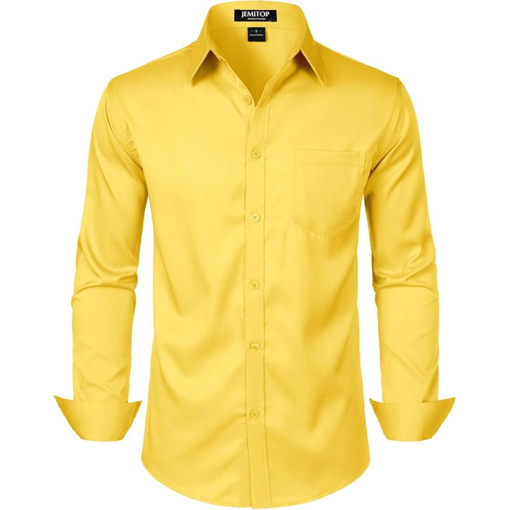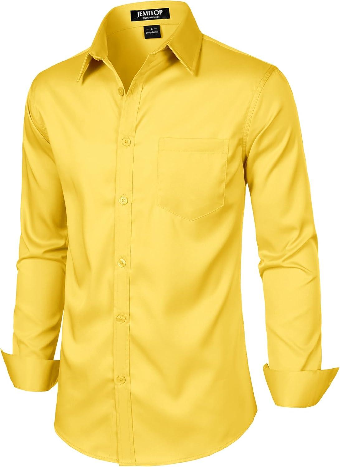 imageJEMITOP Mens Stretch Slim Fit Dress Shirts Formal Wedding Prom Business Long Sleeve Button Down Shirt with PocketYellow