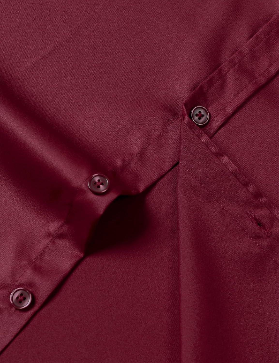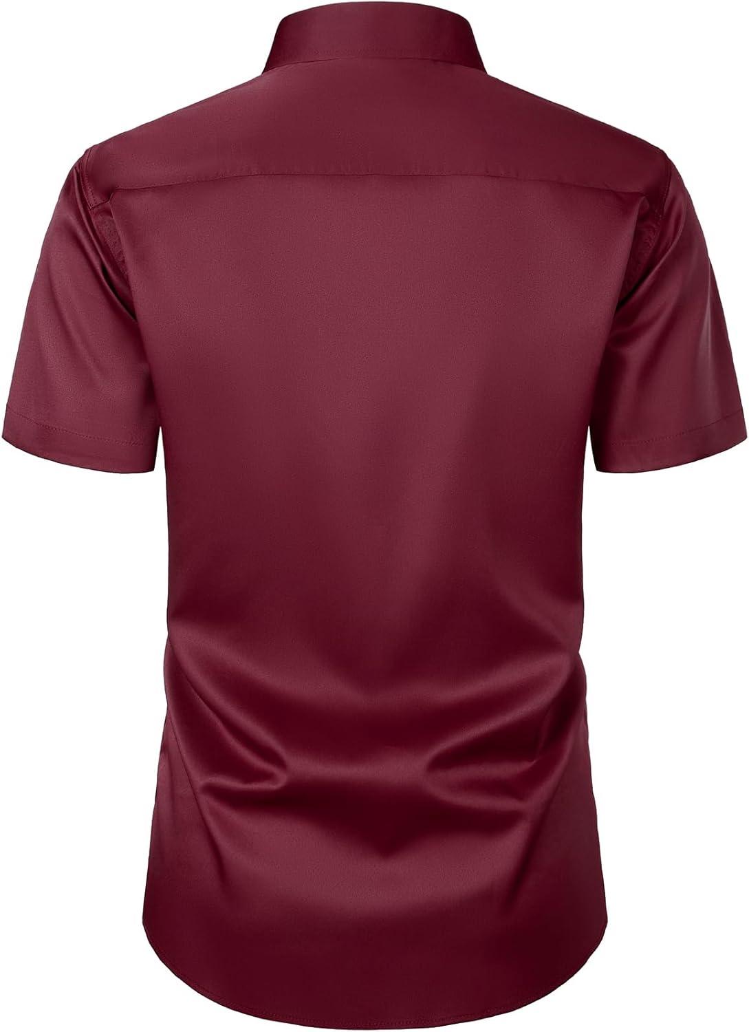 JEMITOP Men's Stretch Slim Fit Dress Shirts Formal Wedding Prom Short Sleeve Button Down Shirt with Pocket(Burgundy)