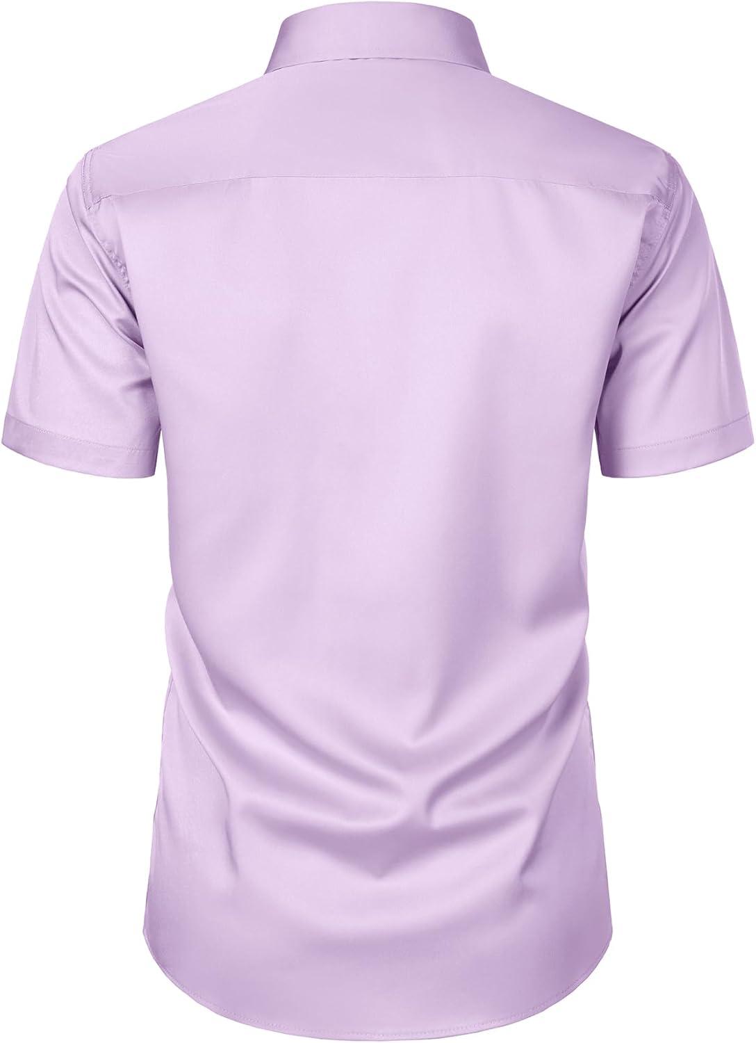JEMITOP Men's Stretch Slim Fit Dress Shirts Formal Wedding Prom Short Sleeve Button Down Shirt with Pocket(Lavender Purple)