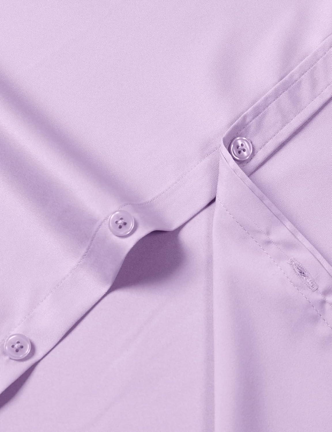 JEMITOP Men’s Stretch Slim Fit Dress Shirts Formal Wedding Prom Short Sleeve Button Down Shirt with Pocket(Lavender Purple)