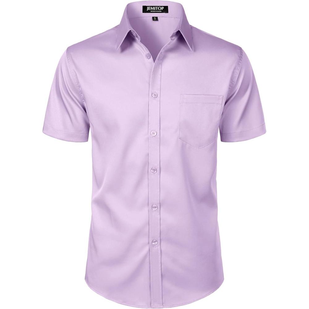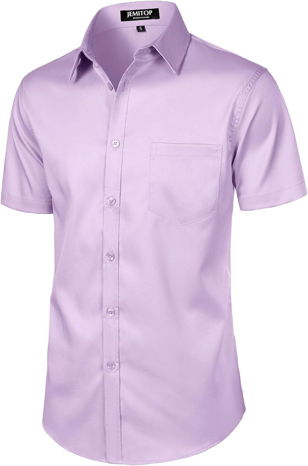imageJEMITOP Mens Stretch Slim Fit Dress Shirts Formal Wedding Prom Short Sleeve Button Down Shirt with PocketLavender Purple