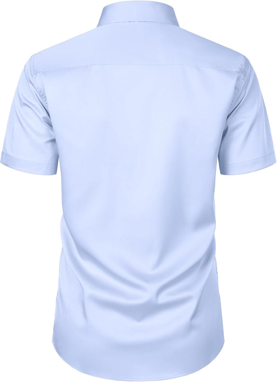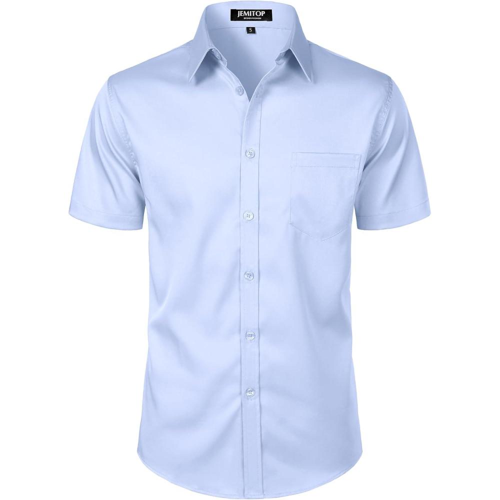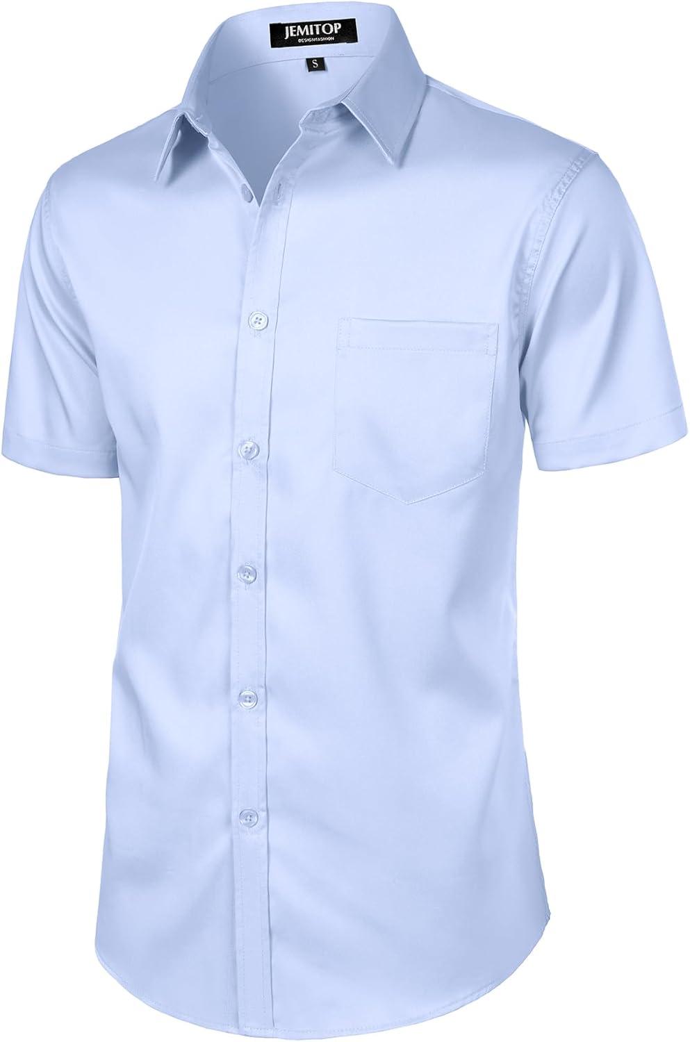 JEMITOP Men’s Stretch Slim Fit Dress Shirts Formal Wedding Prom Short Sleeve Button Down Shirt with Pocket(Light Blue)