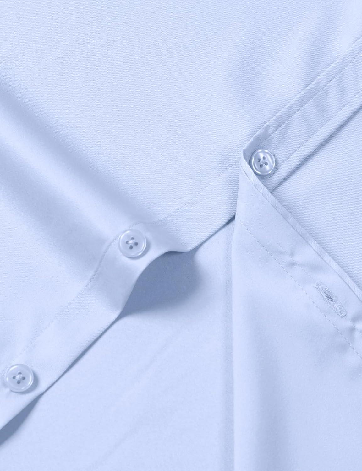 JEMITOP Men's Stretch Slim Fit Dress Shirts Formal Wedding Prom Short Sleeve Button Down Shirt with Pocket(Light Blue)