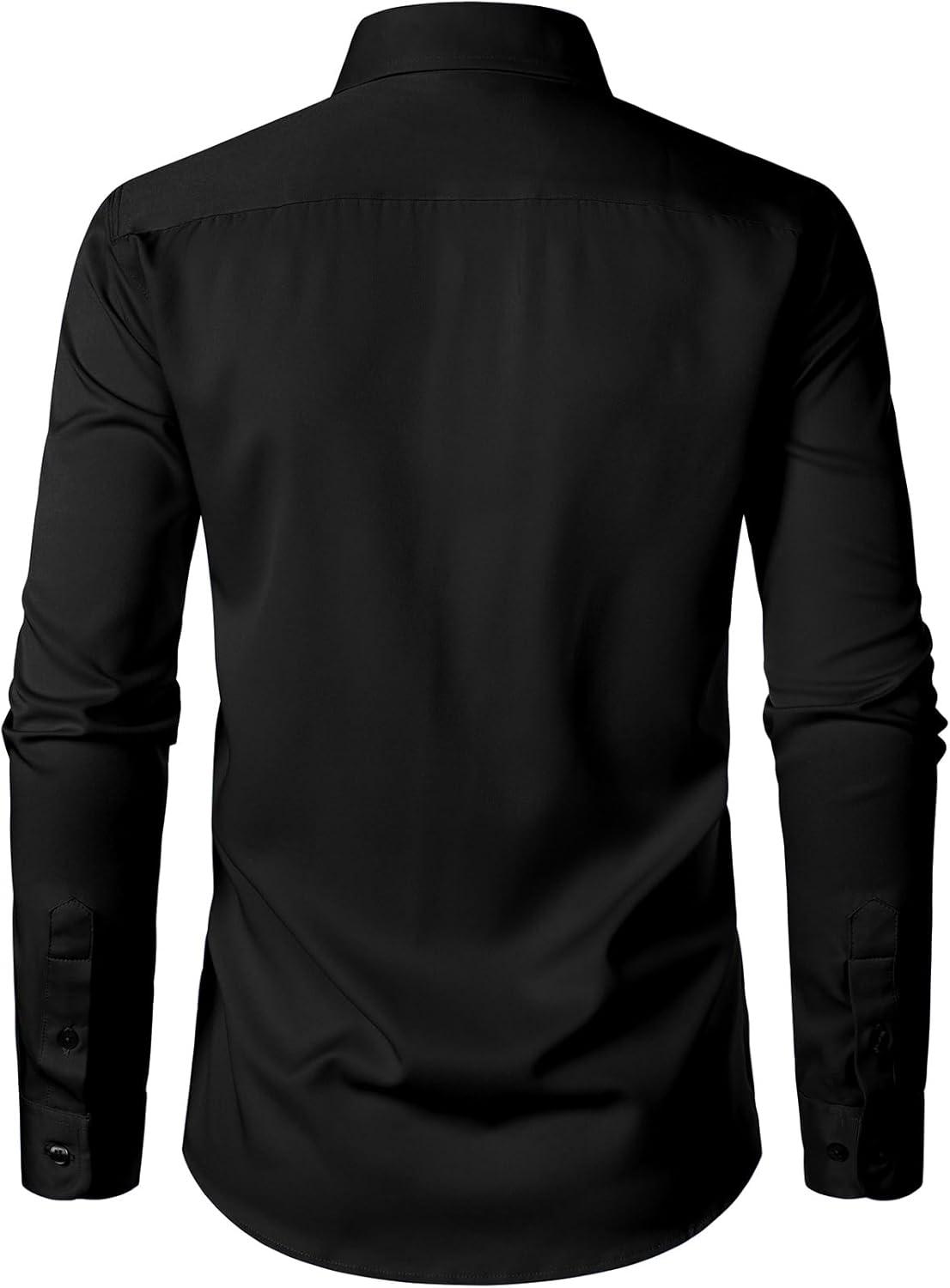 JEMITOP Men's Stretch Soft Slim Fit Dress Shirts Long Sleeve Formal Wedding Business Casual Button Down Shirt(Black)