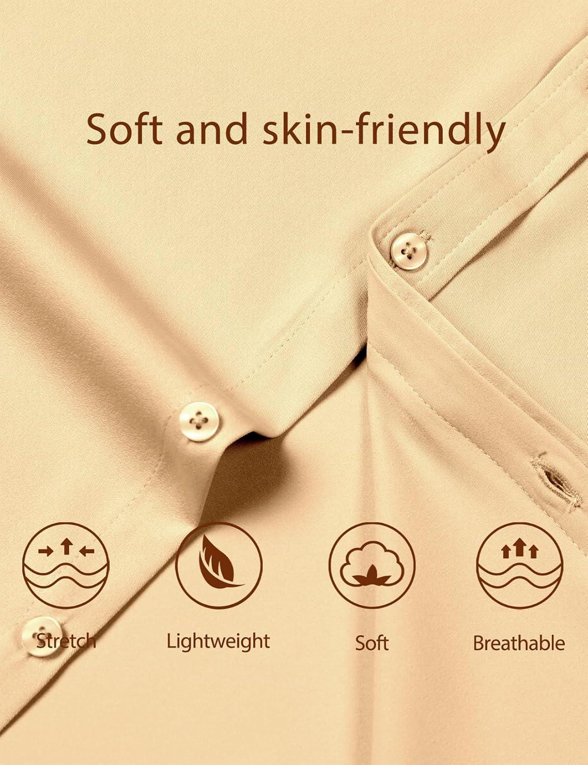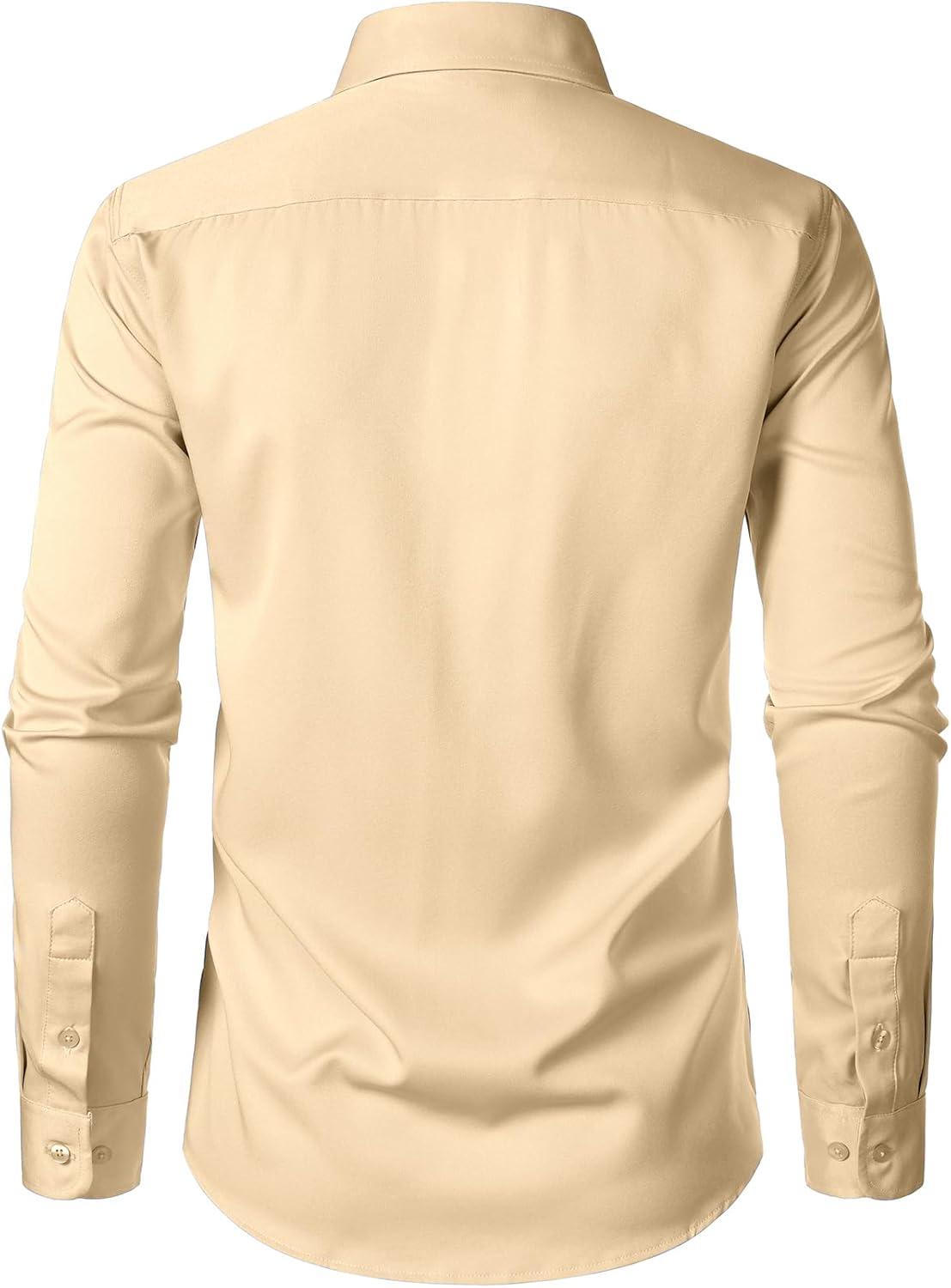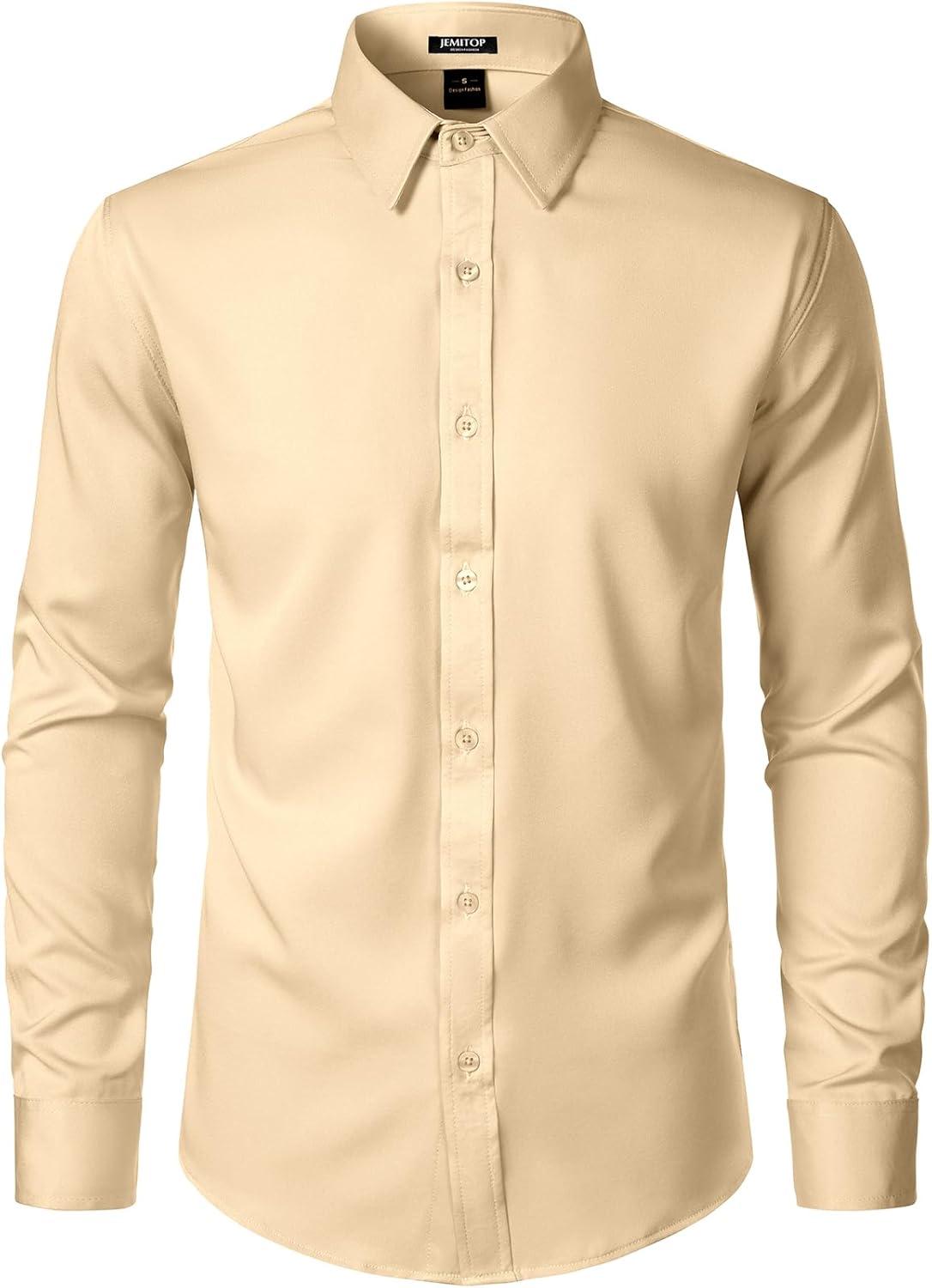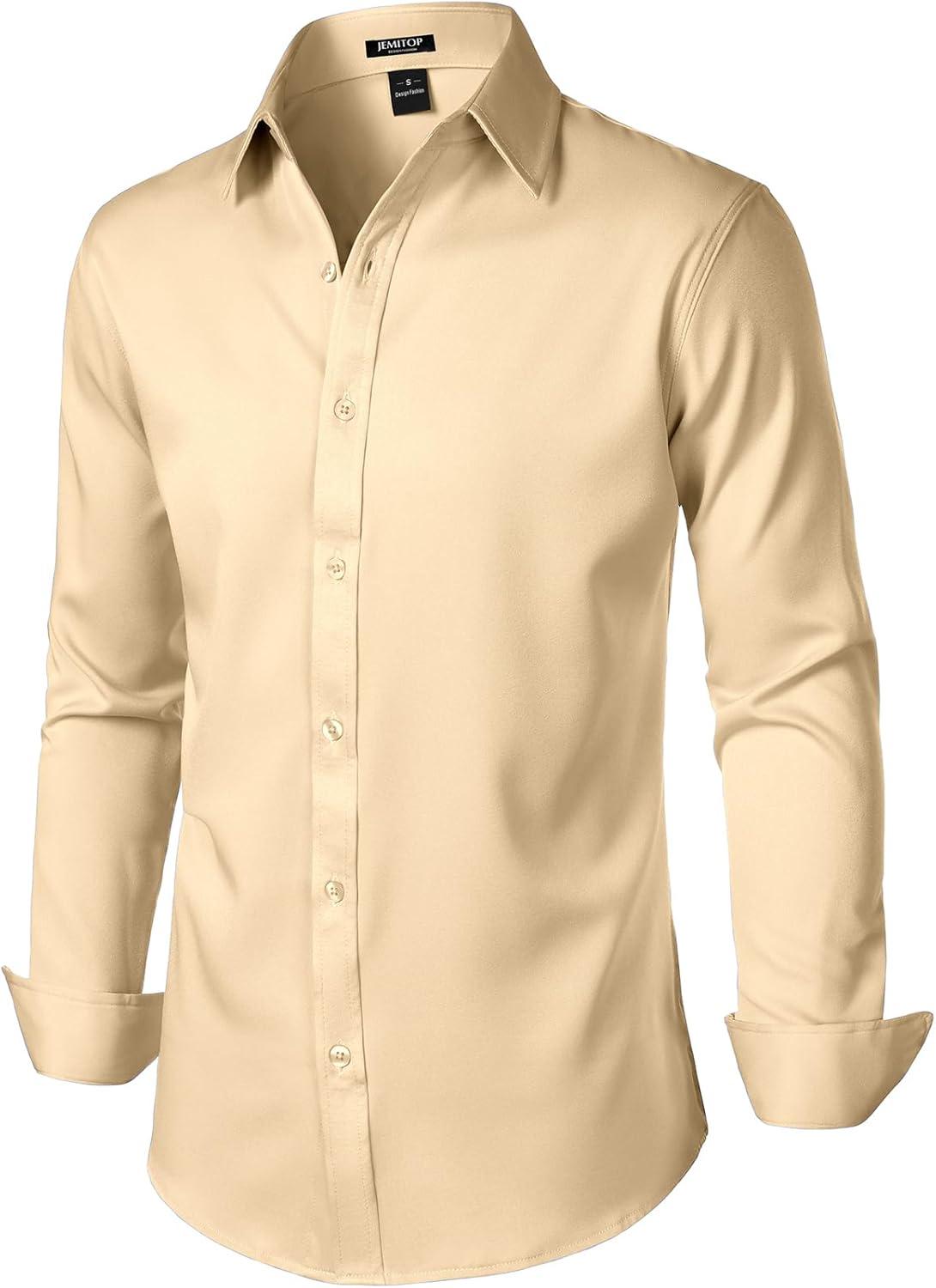 JEMITOP Men's Stretch Soft Slim Fit Dress Shirts Long Sleeve Formal Wedding Business Casual Button Down Shirt(Khaki)