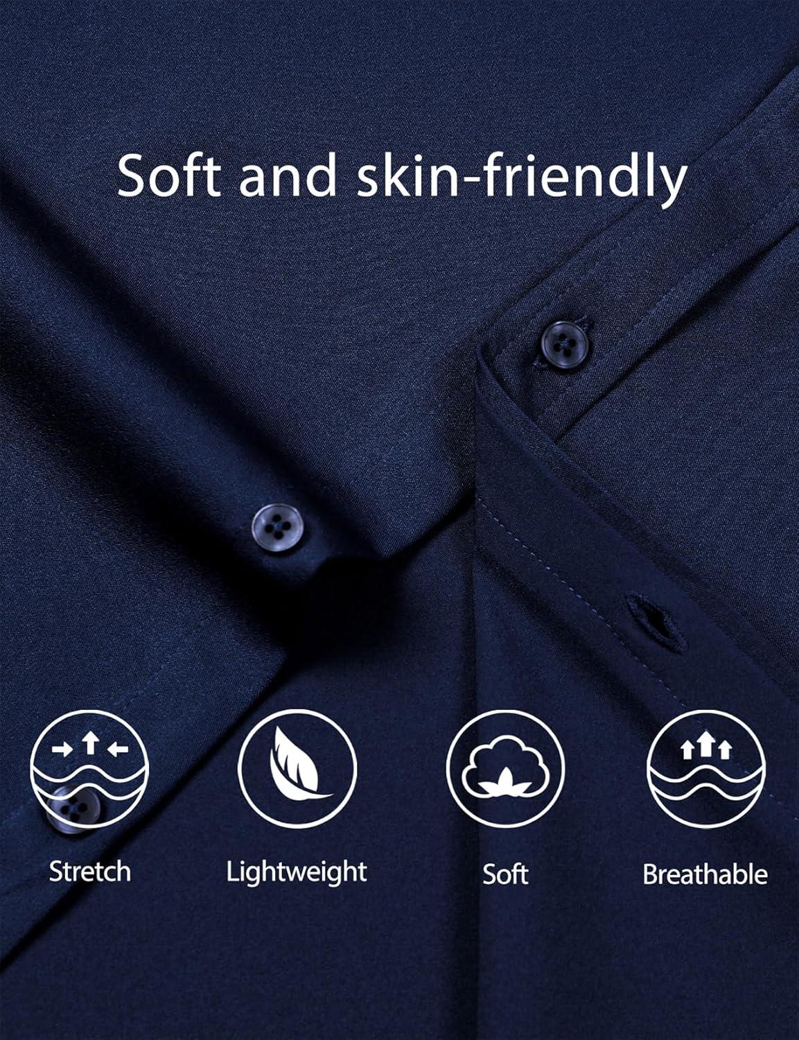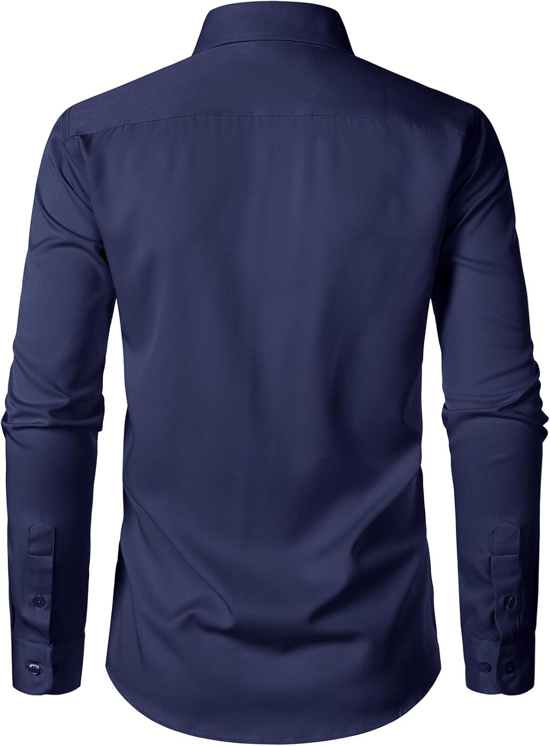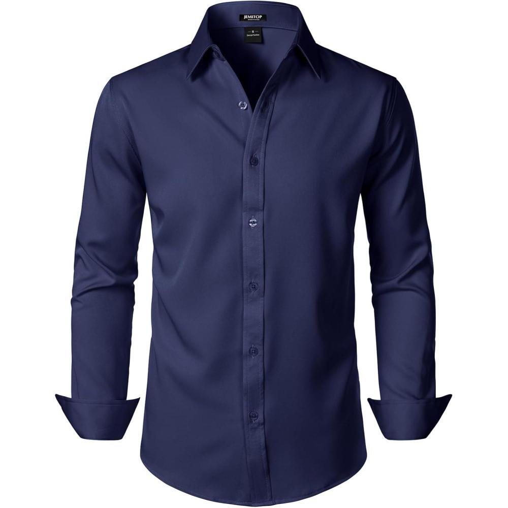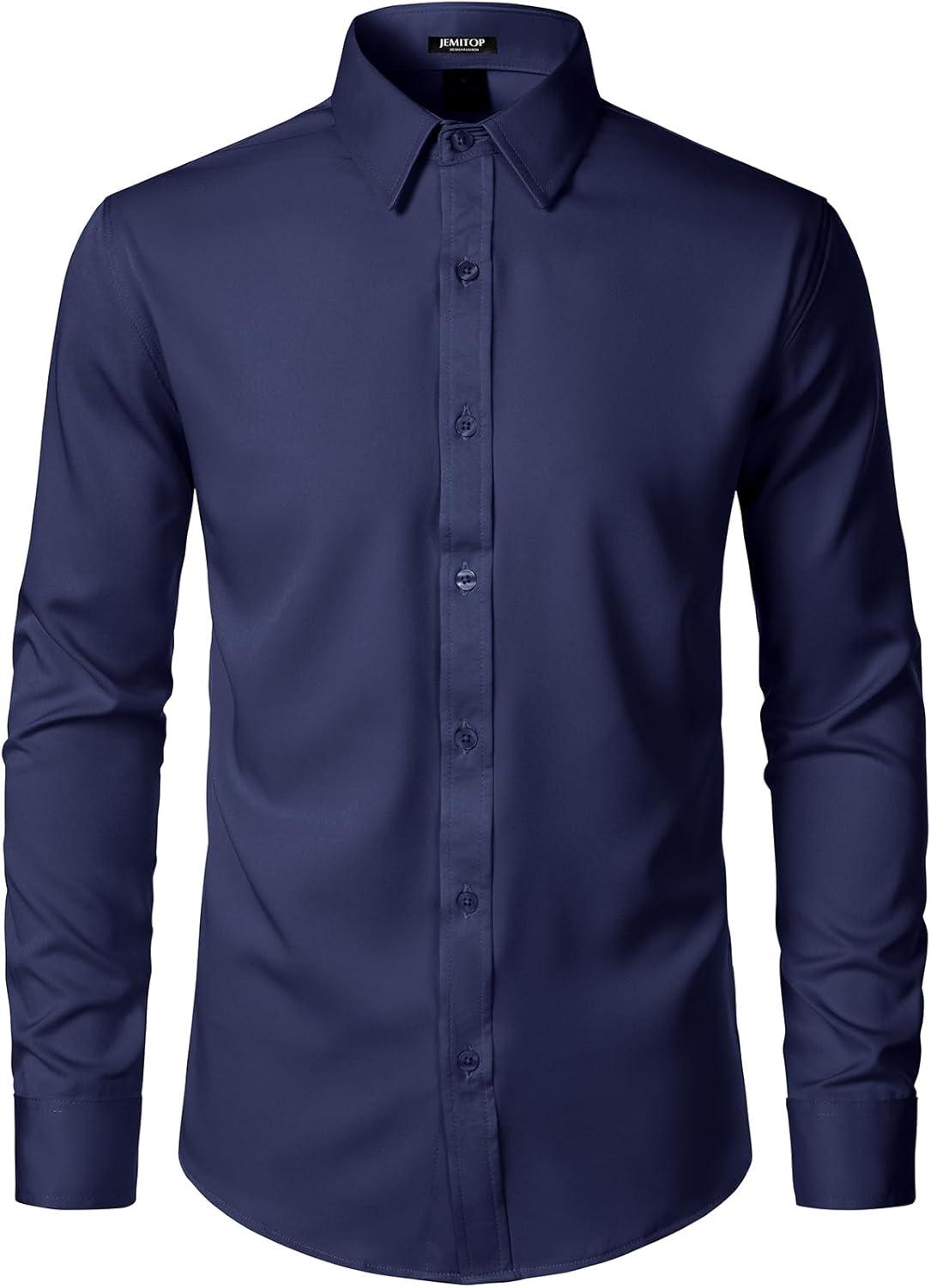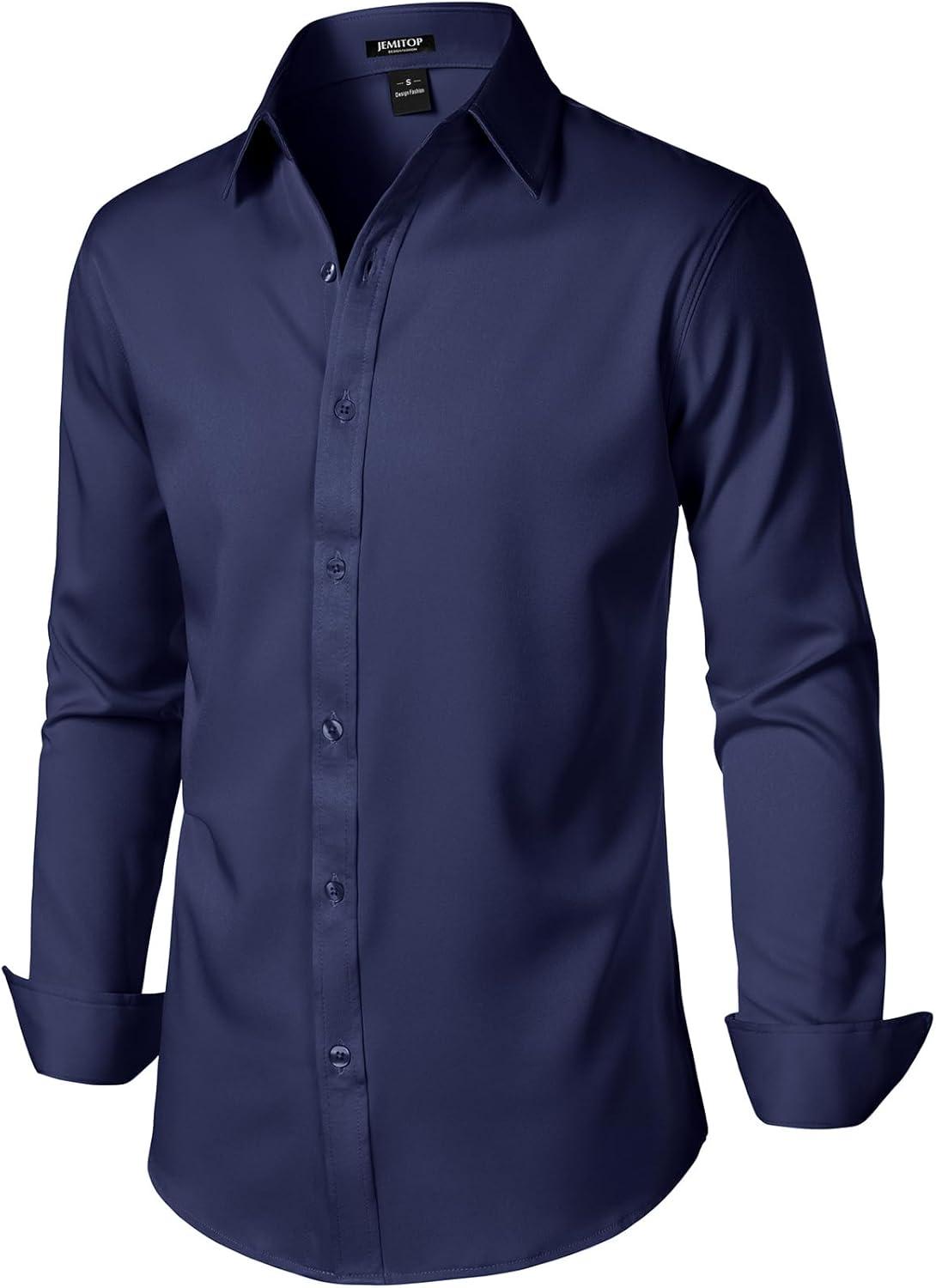 JEMITOP Men’s Stretch Soft Slim Fit Dress Shirts Long Sleeve Formal Wedding Business Casual Button Down Shirt(Navy Blue)