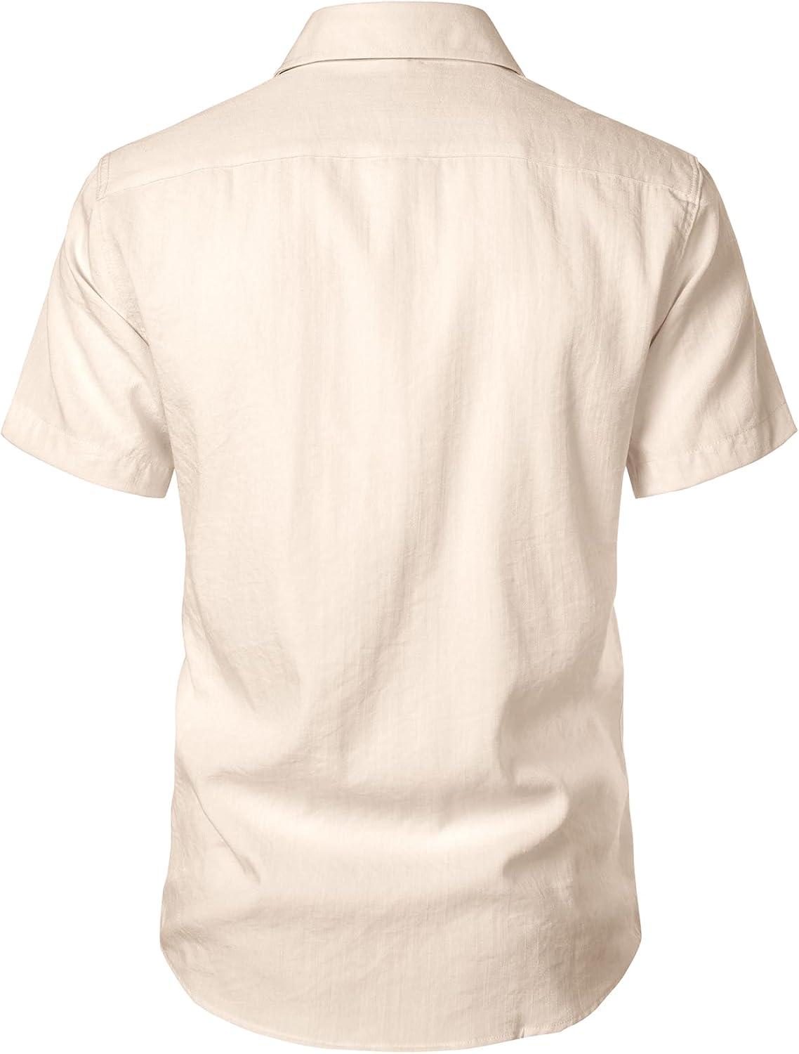 JEMITOP Men’s Stretch Textured Short Sleeve Button Down Shirts Summer Casual Beach Wedding Vacation Shirt(Beige)