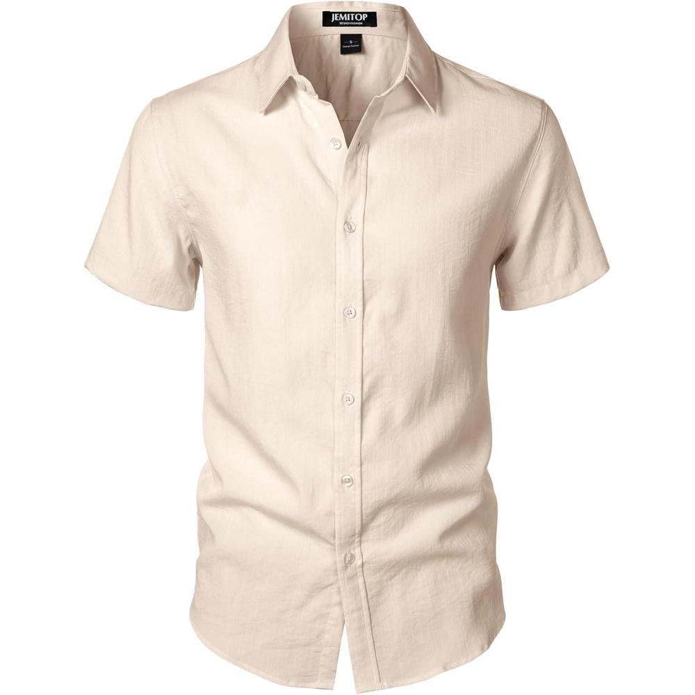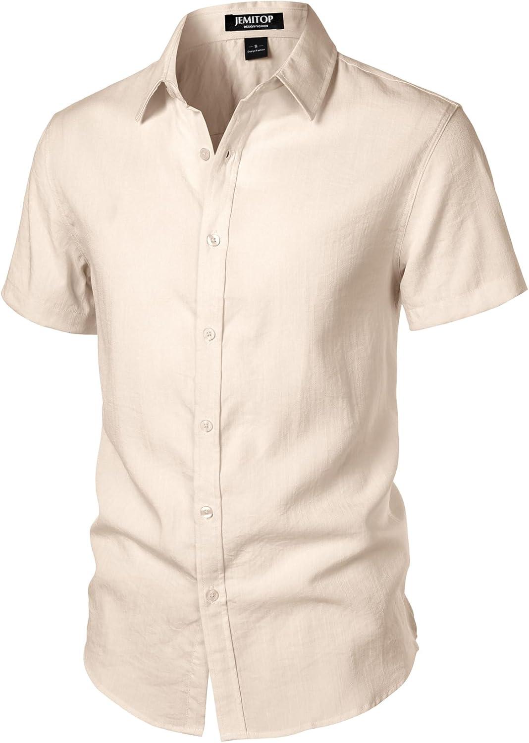 imageJEMITOP Mens Stretch Textured Short Sleeve Button Down Shirts Summer Casual Beach Wedding Vacation ShirtBeige