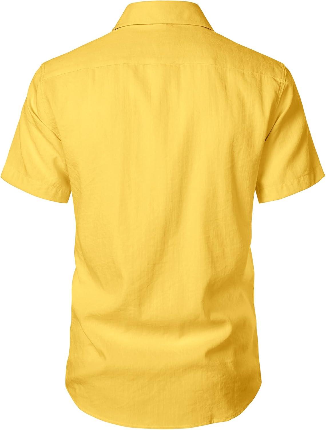 JEMITOP Men's Stretch Textured Short Sleeve Button Down Shirts Summer Casual Beach Wedding Vacation Shirt(Yellow)