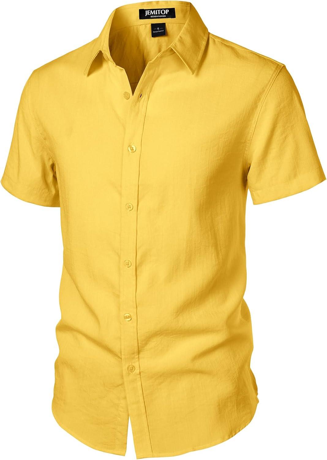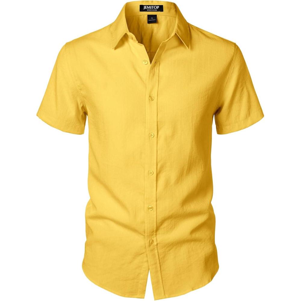 imageJEMITOP Mens Stretch Textured Short Sleeve Button Down Shirts Summer Casual Beach Wedding Vacation ShirtYellow