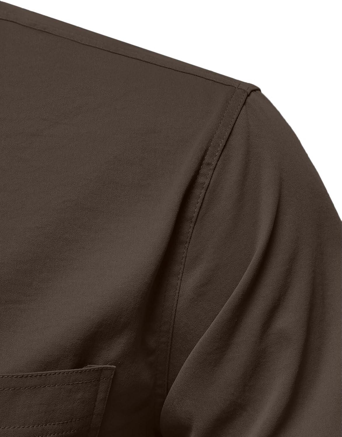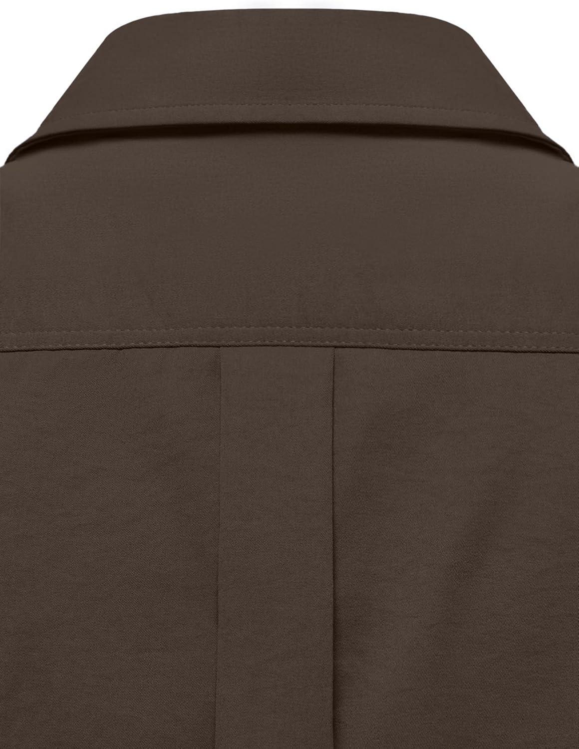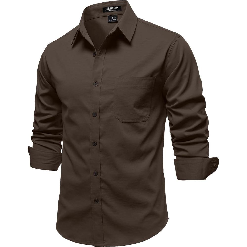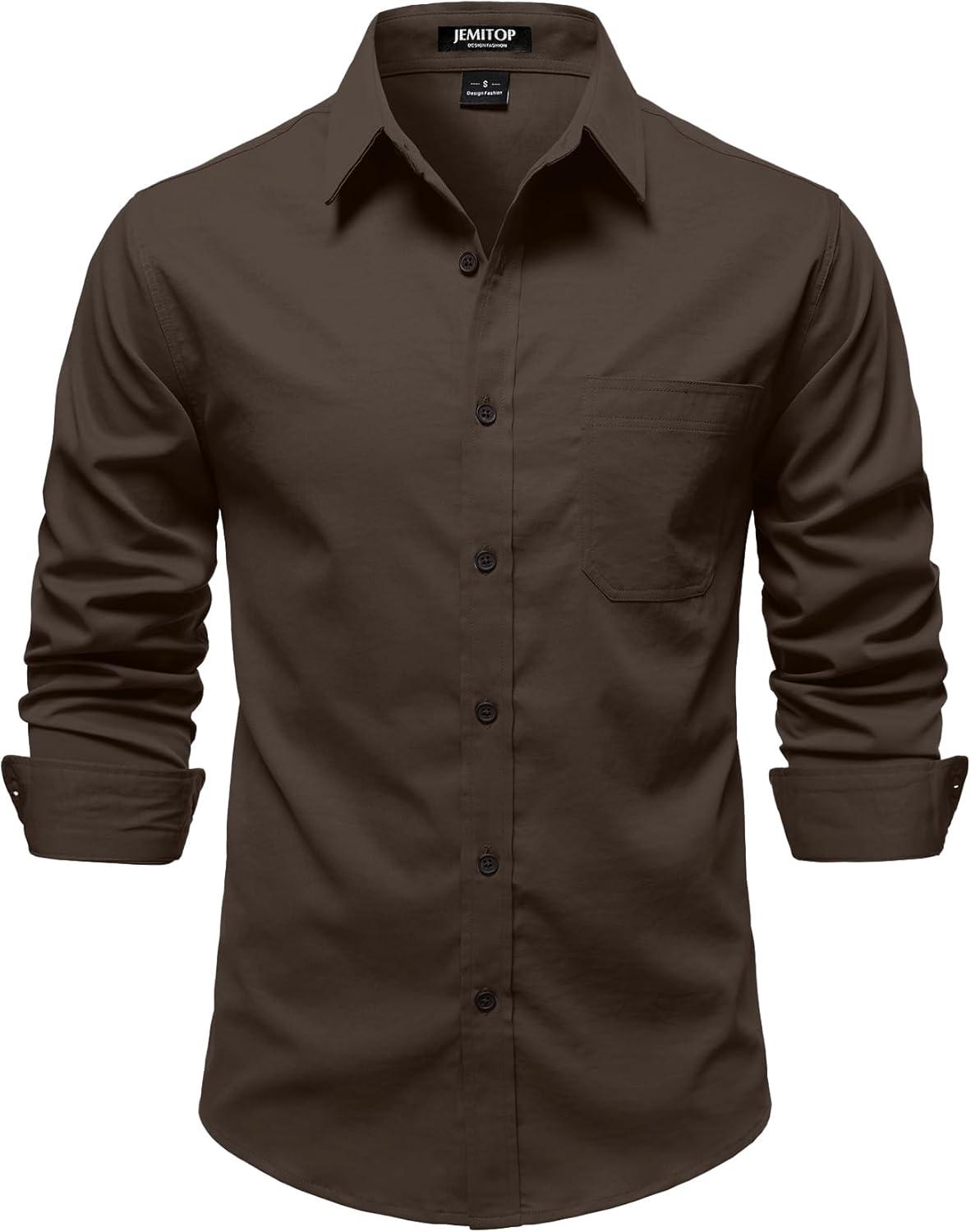 JEMITOP Mens Stretch Vintage Aged Style Shirts Casual Soft Long Sleeve Button Down Shirt with Pocket(Brown)