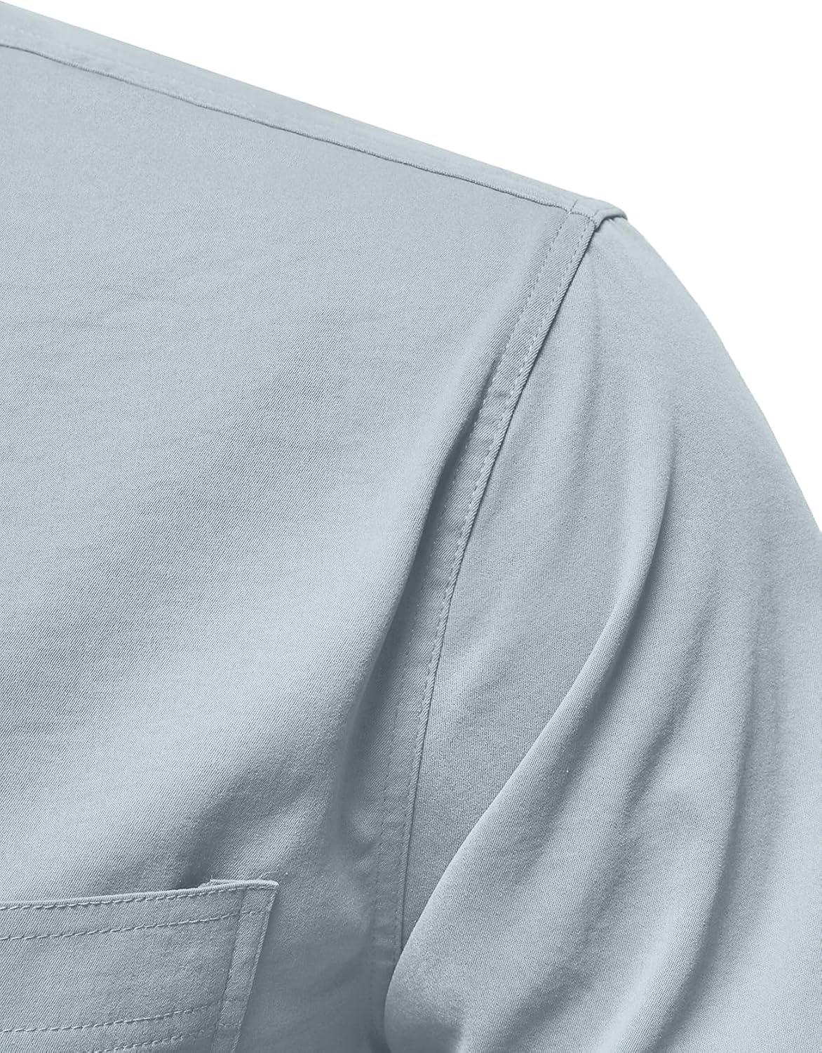 JEMITOP Mens Stretch Vintage Aged Style Shirts Casual Soft Long Sleeve Button Down Shirt with Pocket(Light Blue)