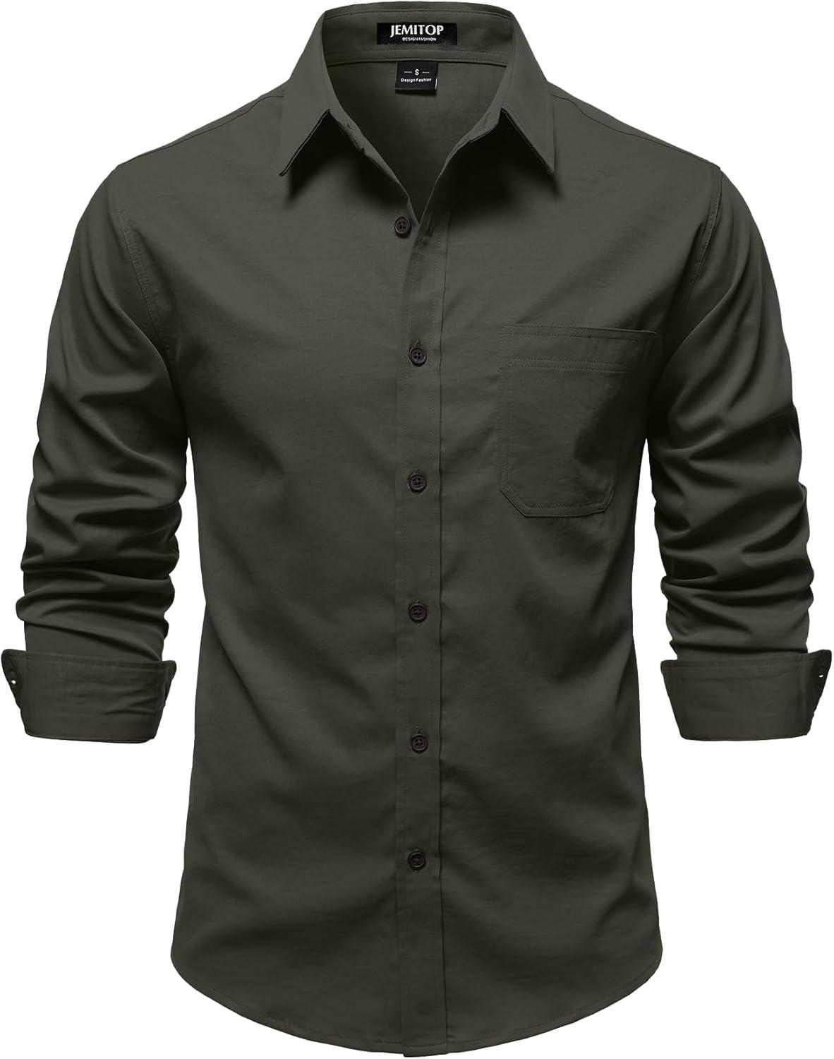 JEMITOP Mens Stretch Vintage Aged Style Shirts Casual Soft Long Sleeve Button Down Shirt with Pocket(Olive Green)