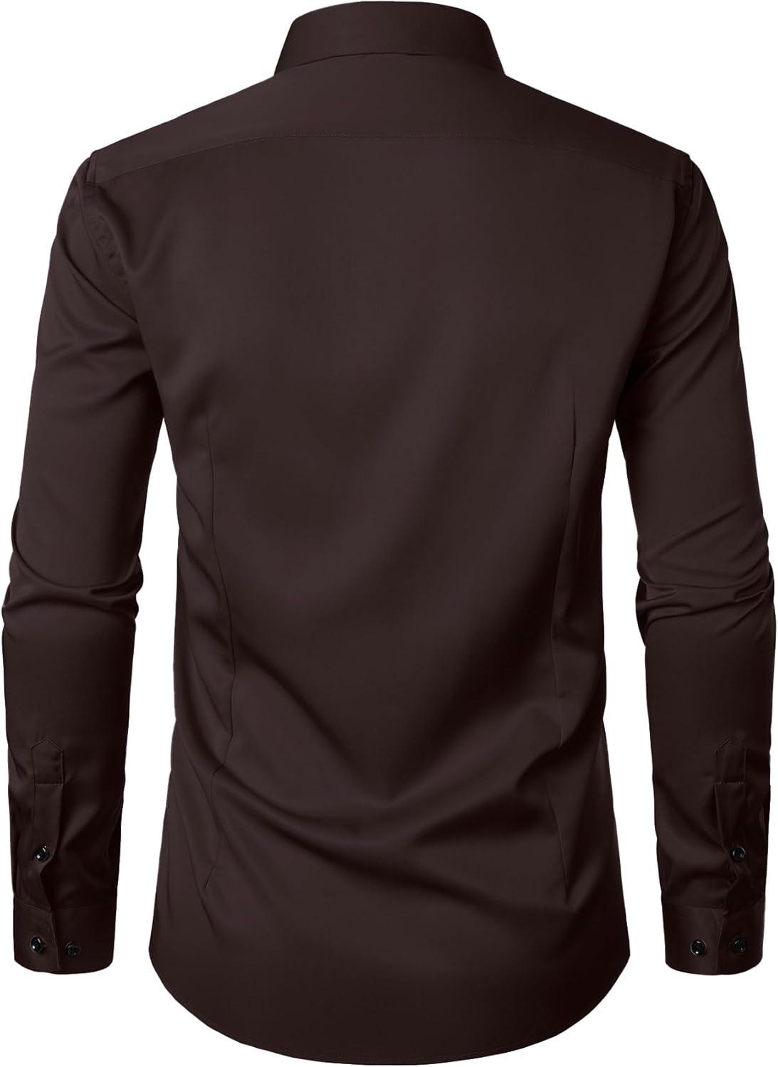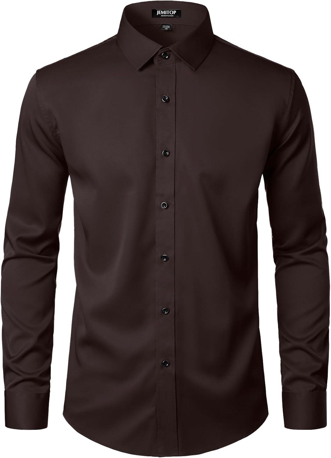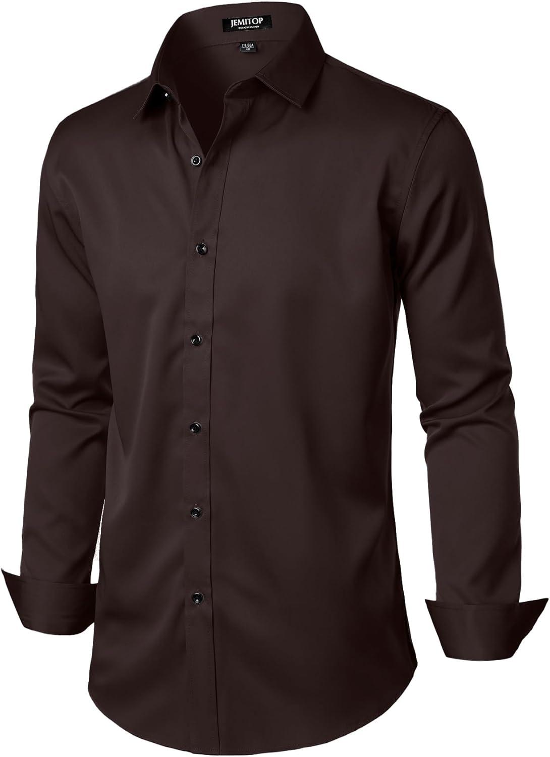 JEMITOP Men's Stretch Wrinkle Free Dress Shirt Formal Prom Wedding Long Sleeve Button Down Shirts(Coffee Brown)