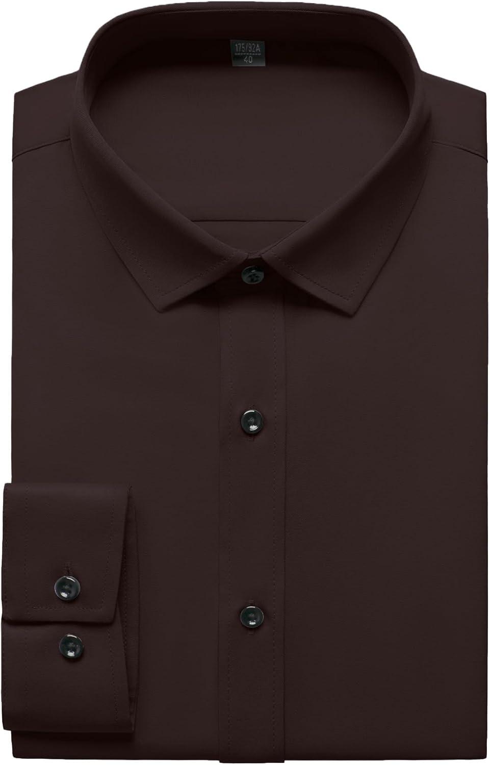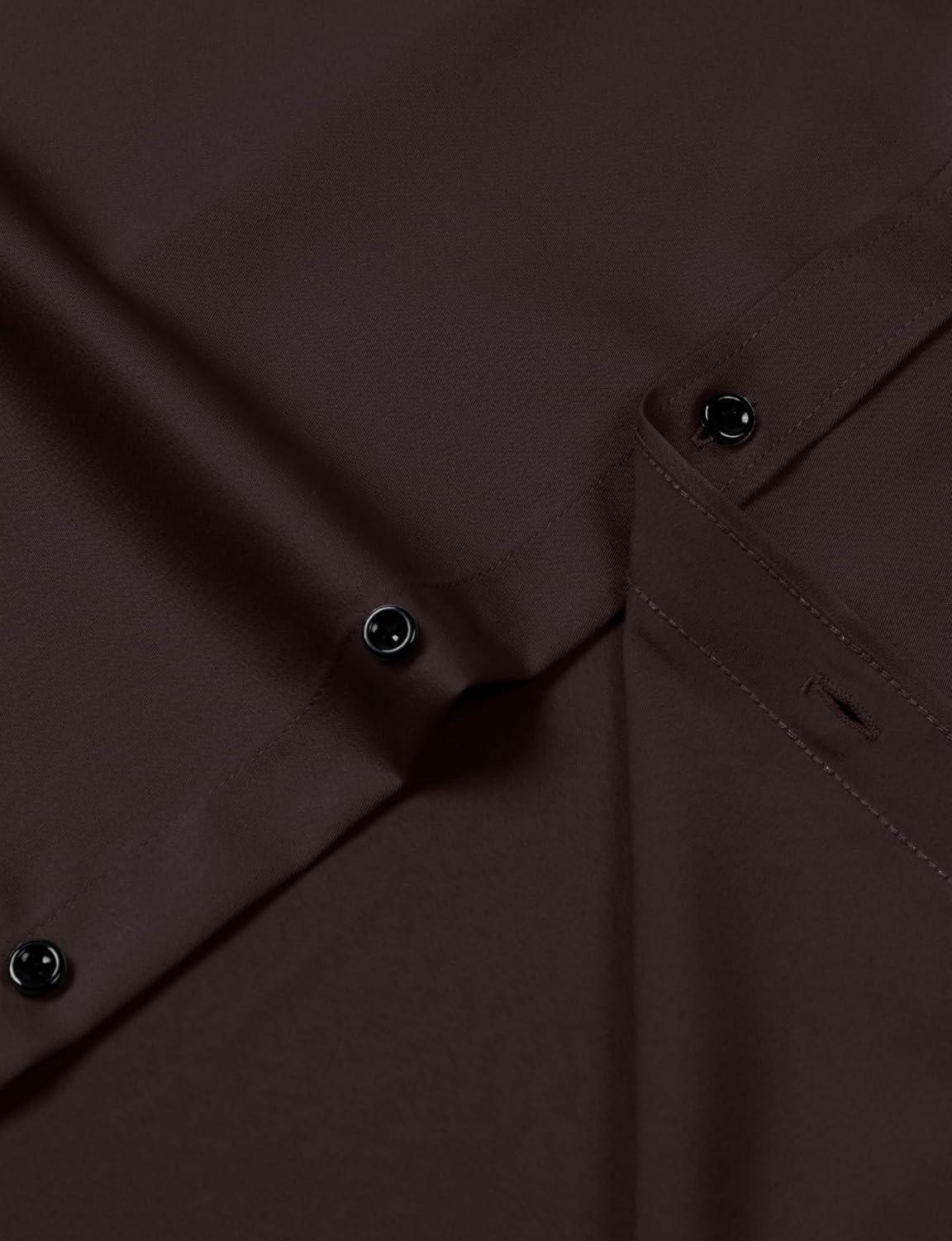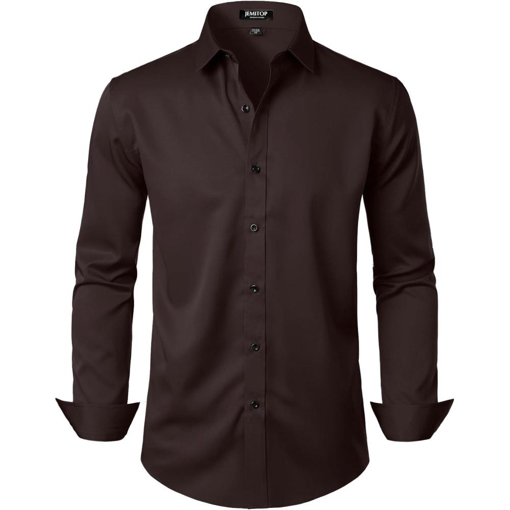 JEMITOP Men's Stretch Wrinkle Free Dress Shirt Formal Prom Wedding Long Sleeve Button Down Shirts(Coffee Brown)